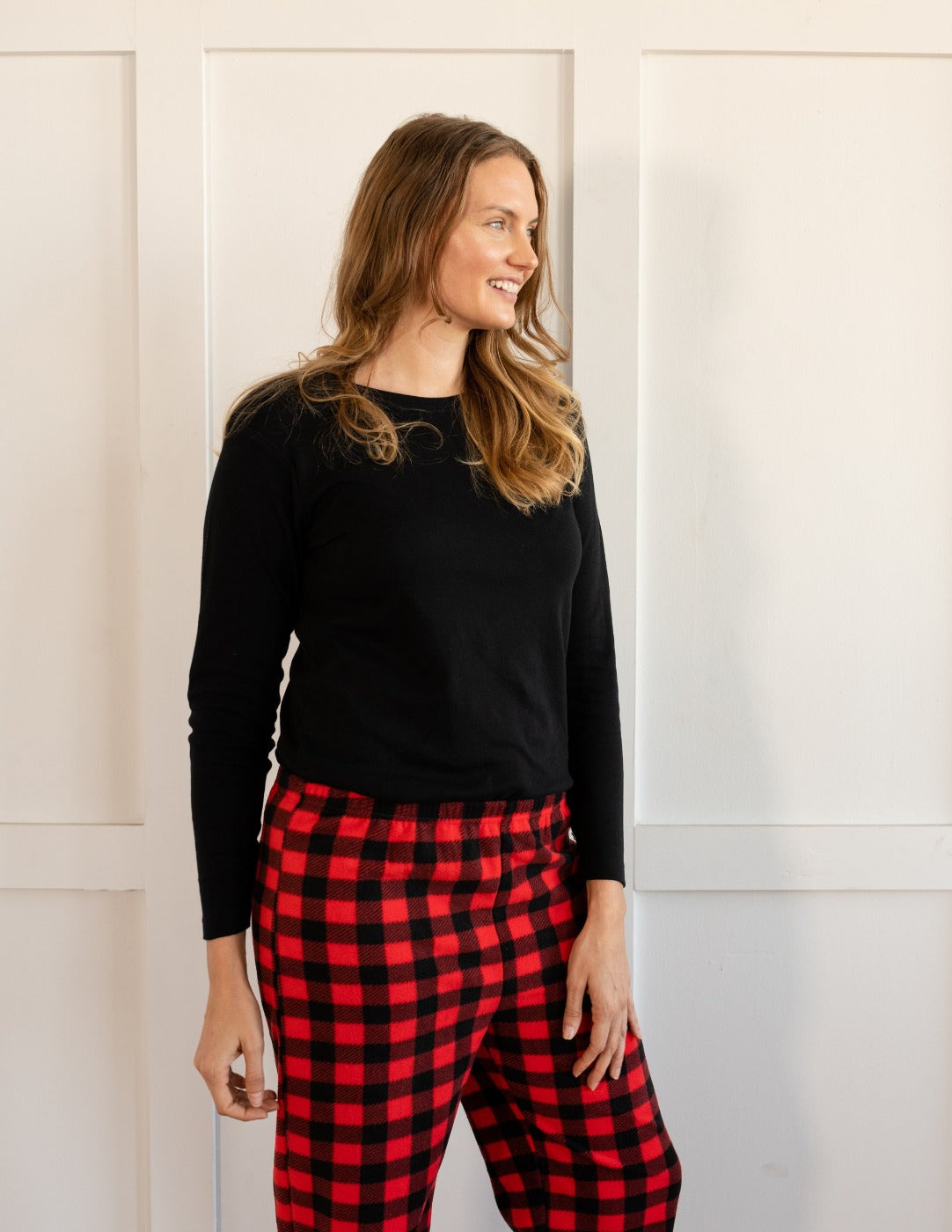 Get cozy and festive just in time for the holidays with our Women’s Fleece Red & Black Plaid Pajama Set—a must-have for matching family photos and chilly nights in. Designed with comfort and style in mind, this set blends warmth with timeless holiday charm.