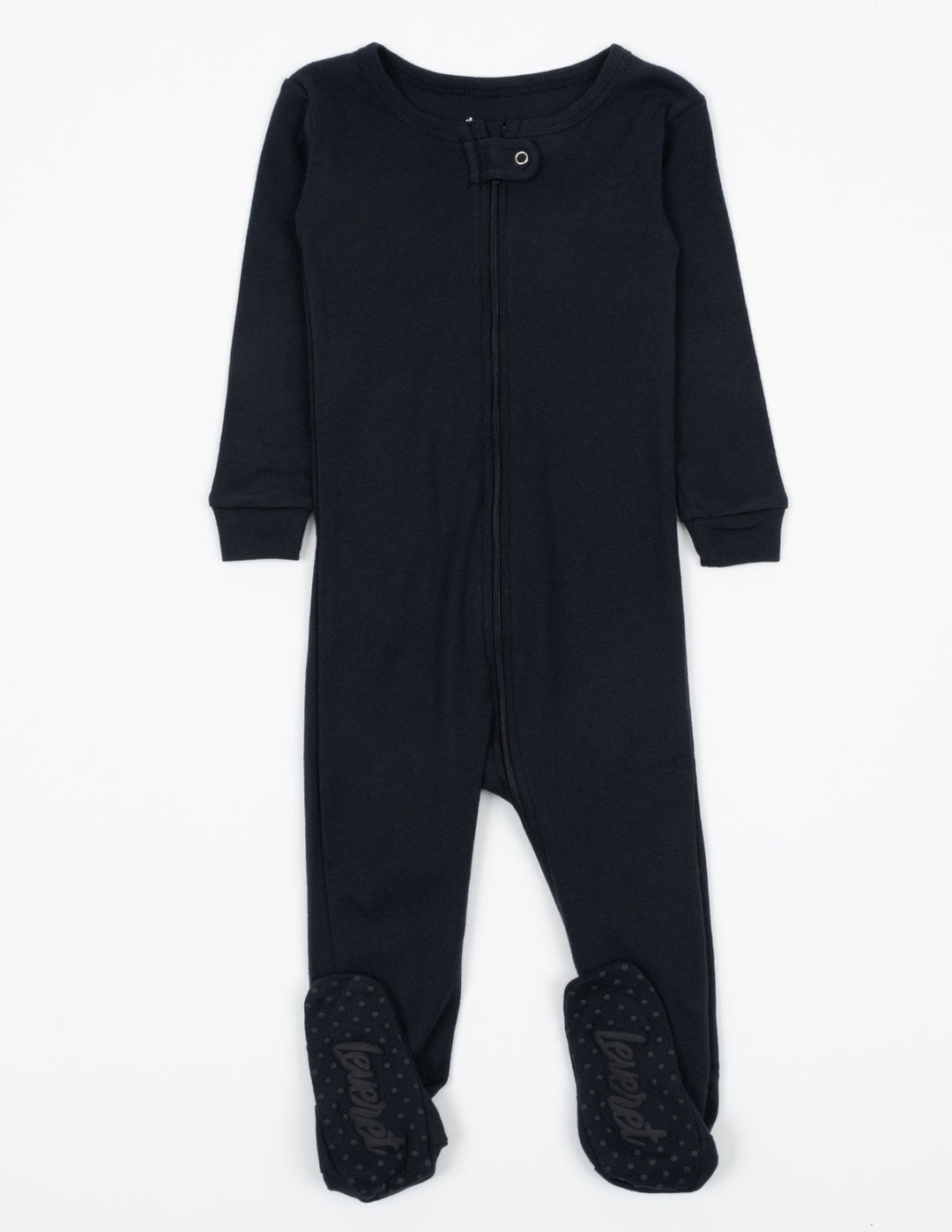 black and navy fleece baby footed pajamas