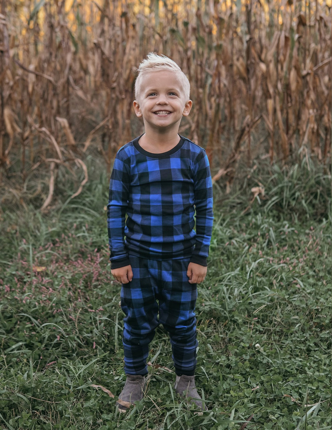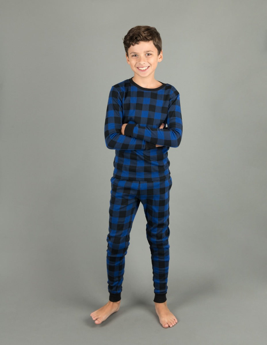 Kids Black & Navy Plaid Pajamas