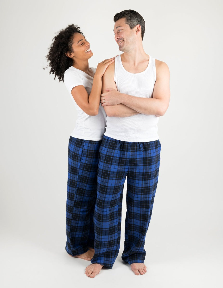 Mens Black & Navy Plaid Flannel Pants