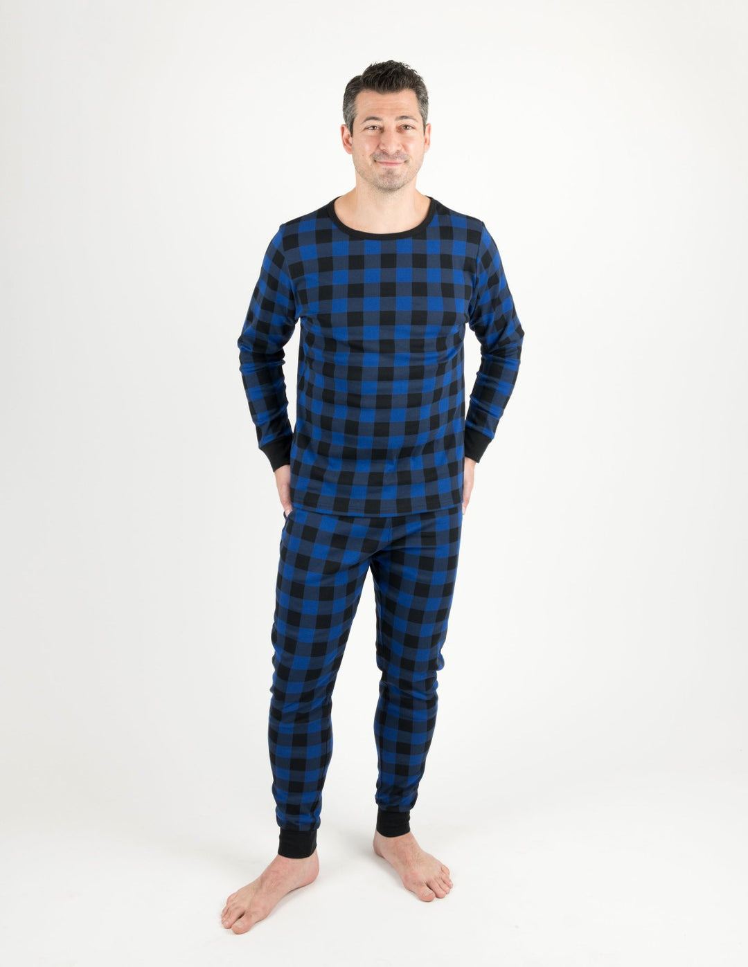 Mens Black & Navy Plaid Cotton Pajamas