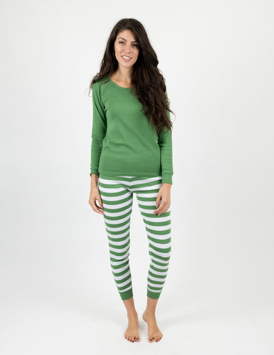 Women's Green & White Stripes Pajamas