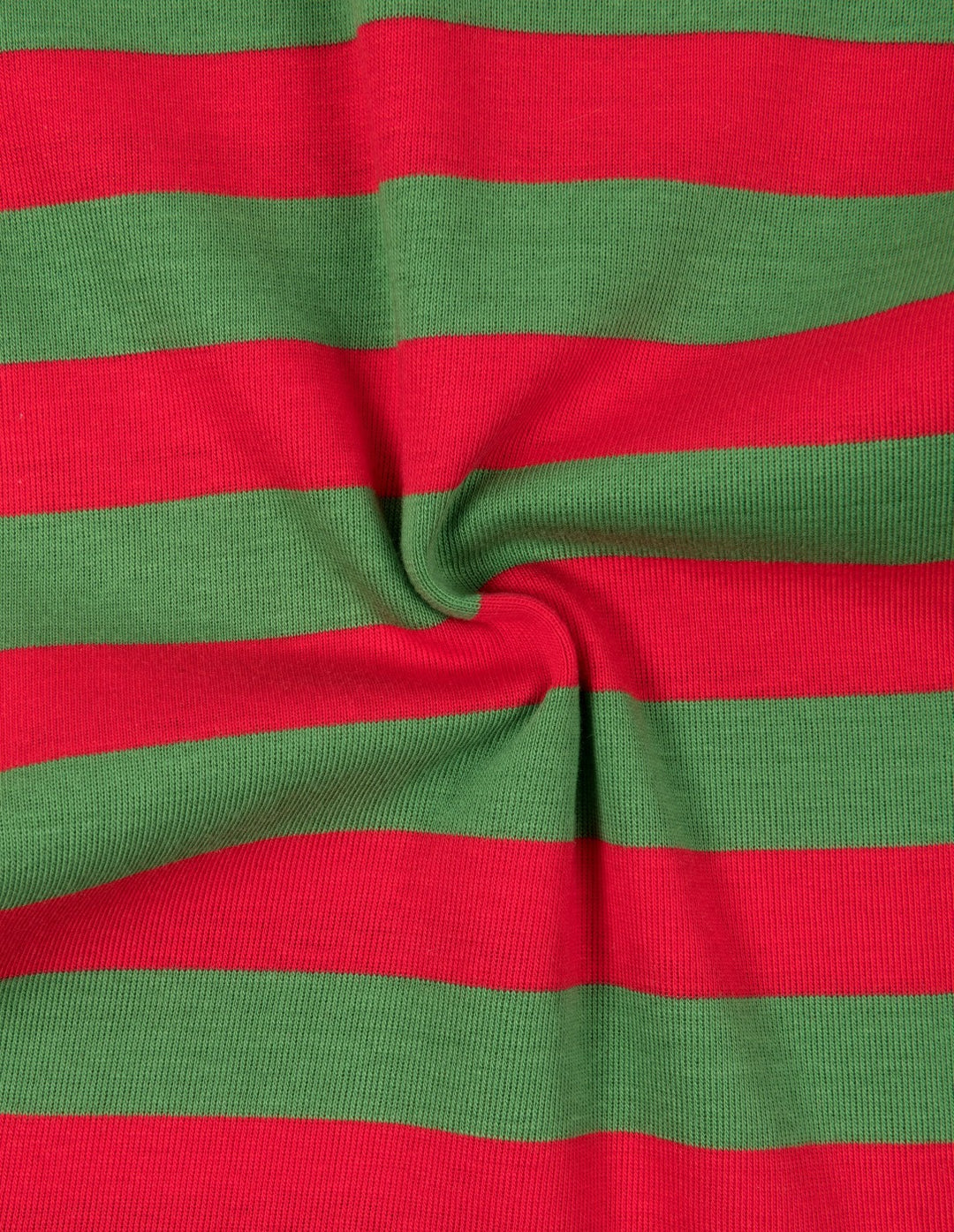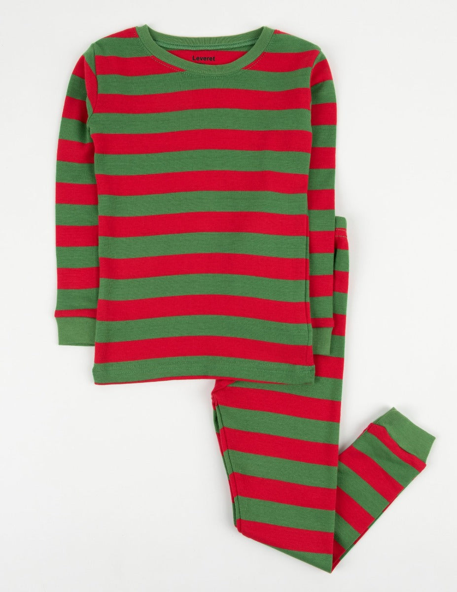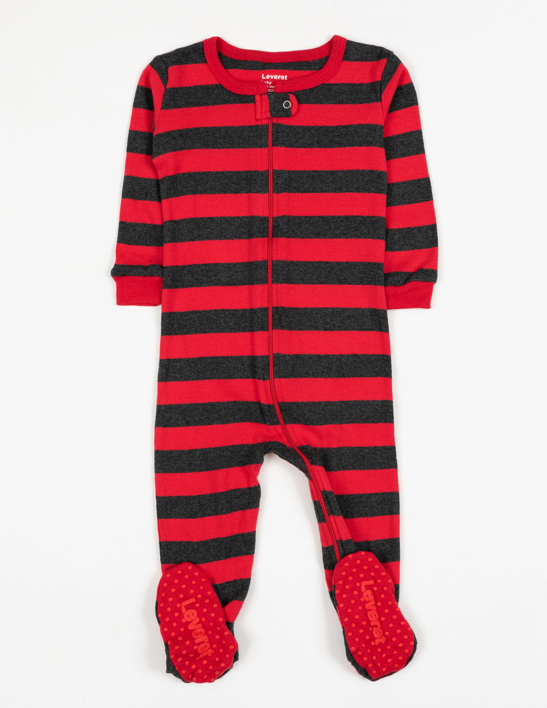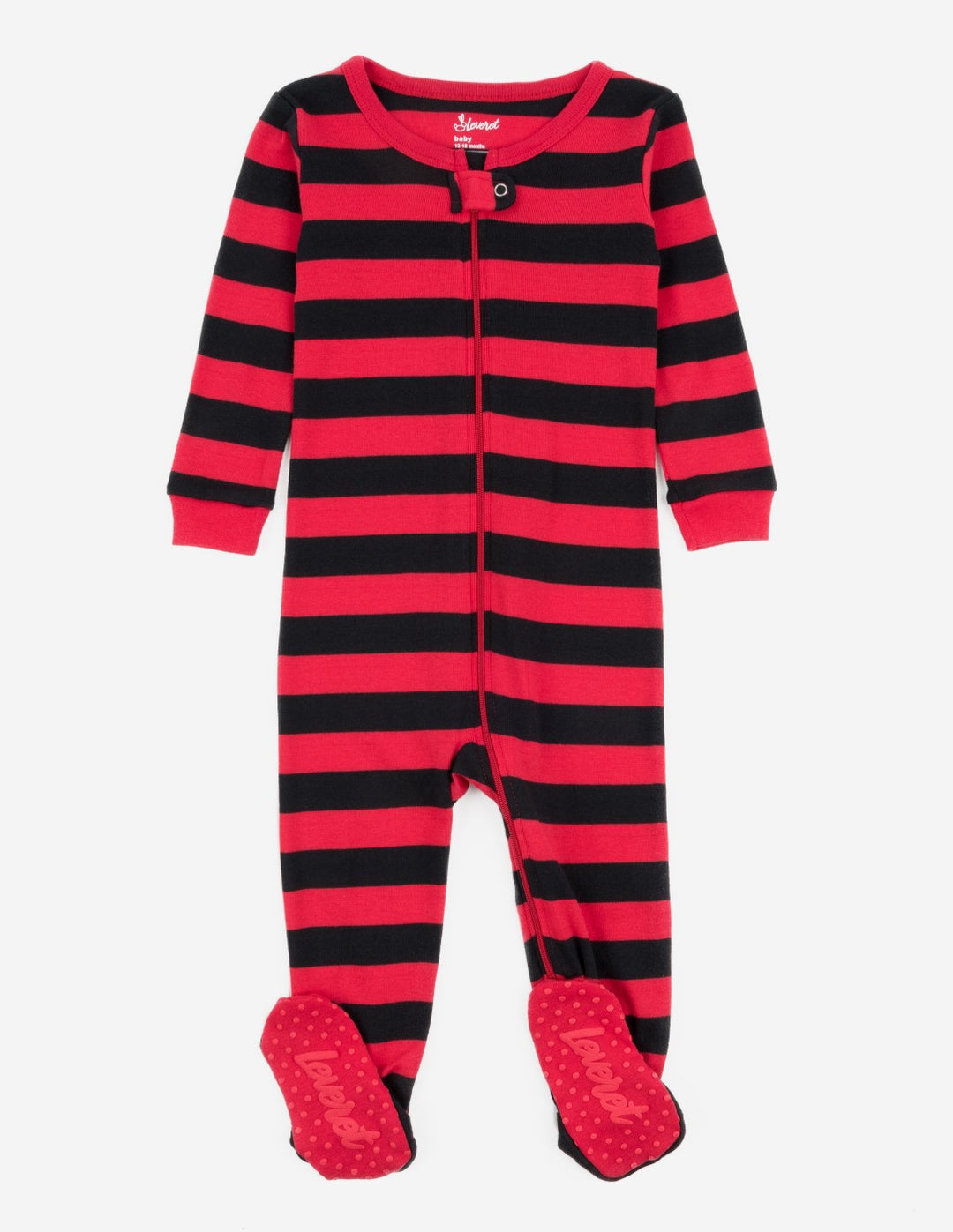 Kid's Footed Cotton Red & Green Stripes Pajamas
