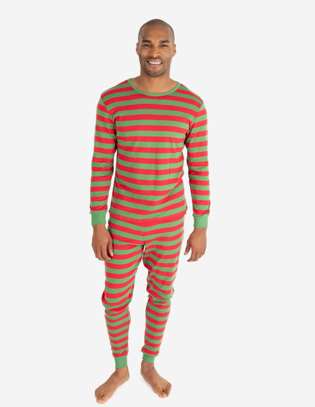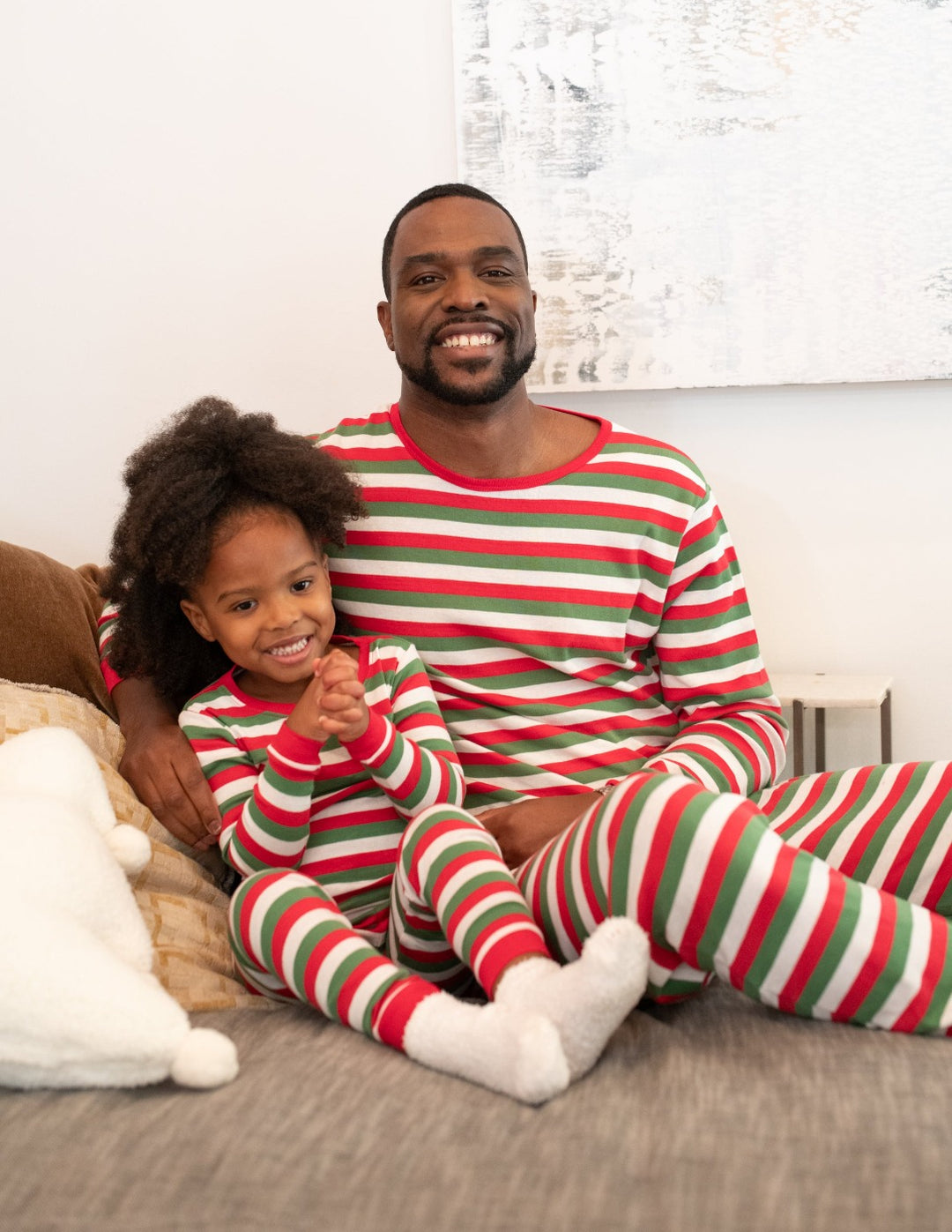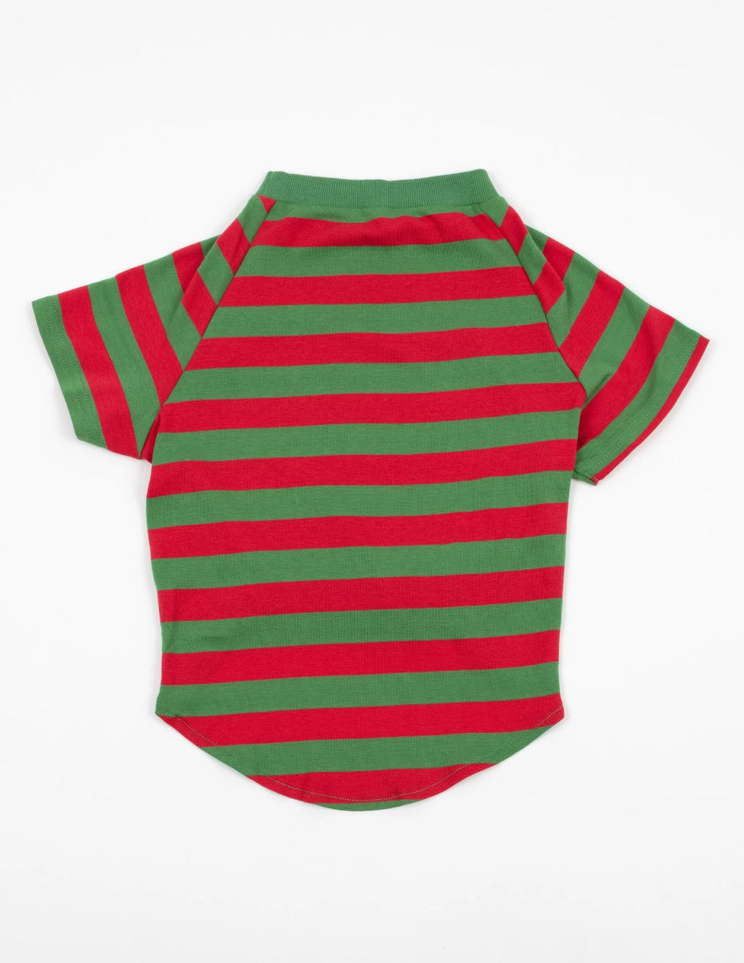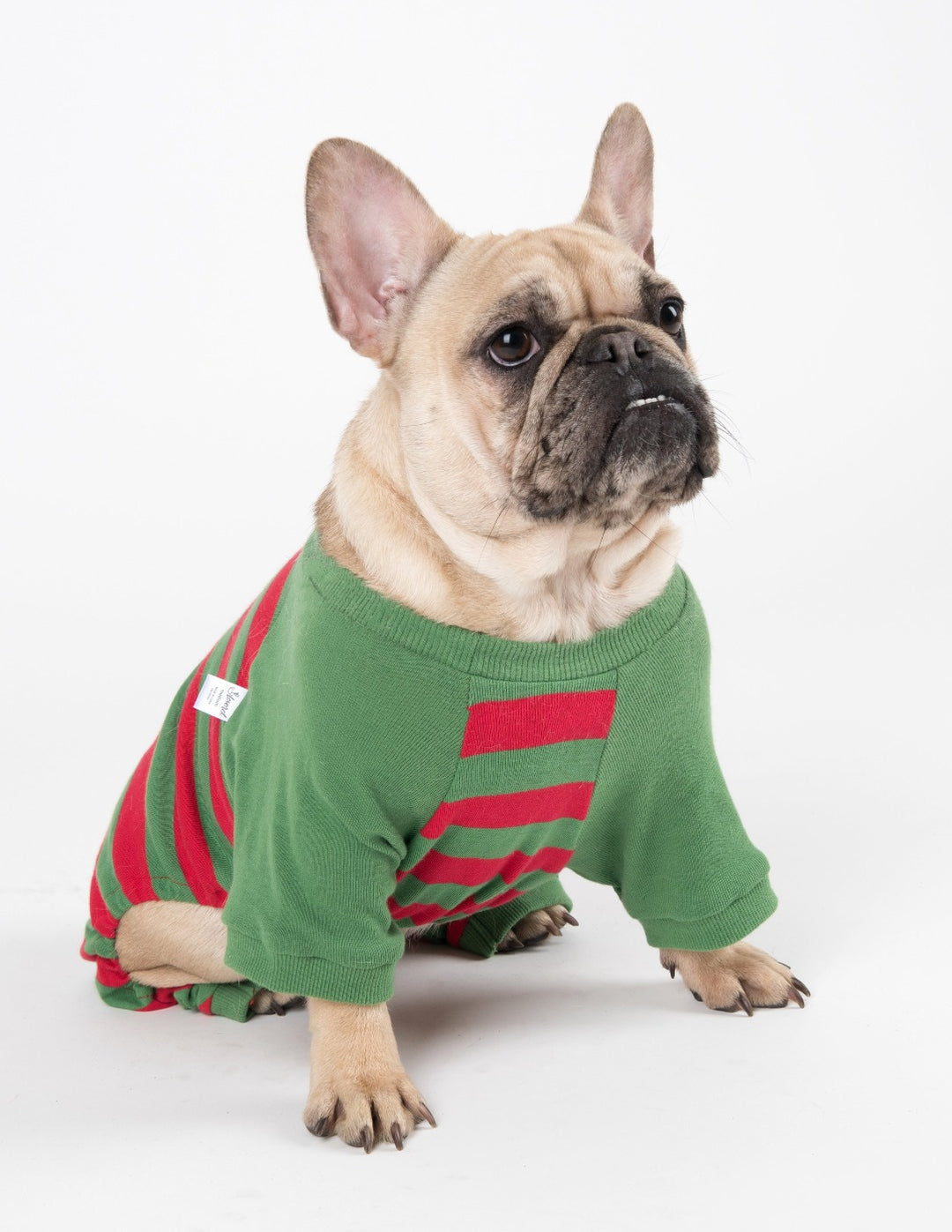 Kid's Footed Cotton Red & Green Stripes Pajamas