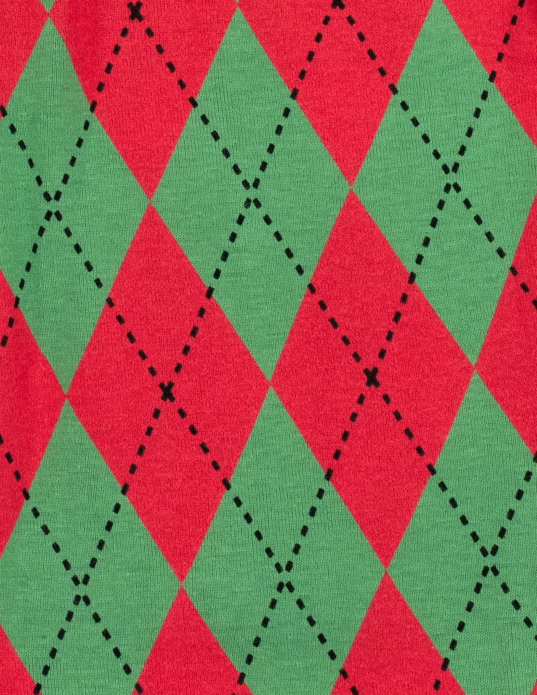 Kids Cotton Red & Green Argyle Elf Pajamas