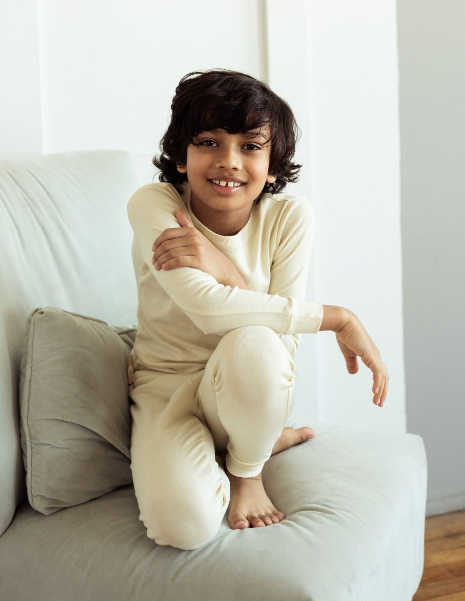 Kid's Beige Ombré Tie Dye Cotton Pajamas