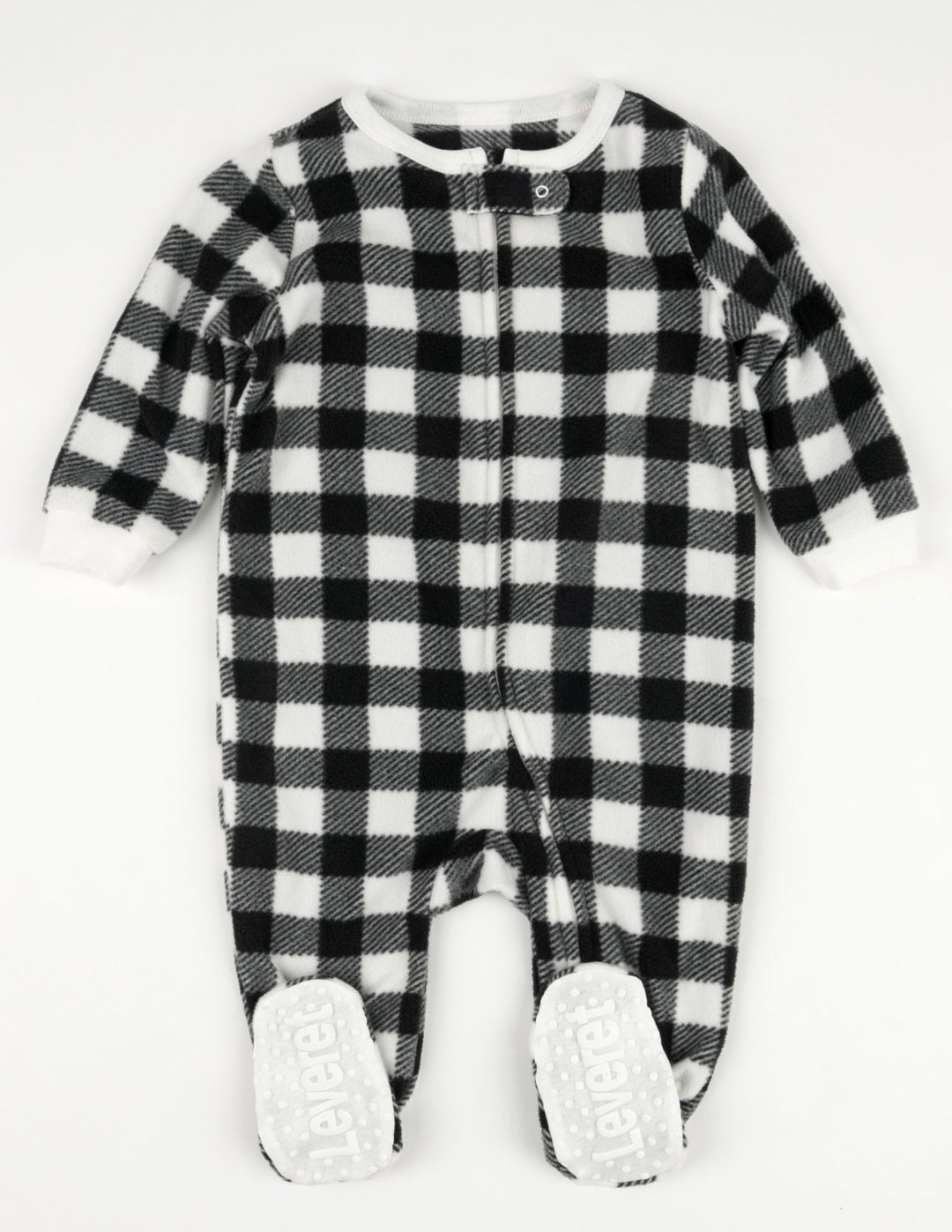 Kid's Footed Fleece Black & White Plaid Fleece Pajamas