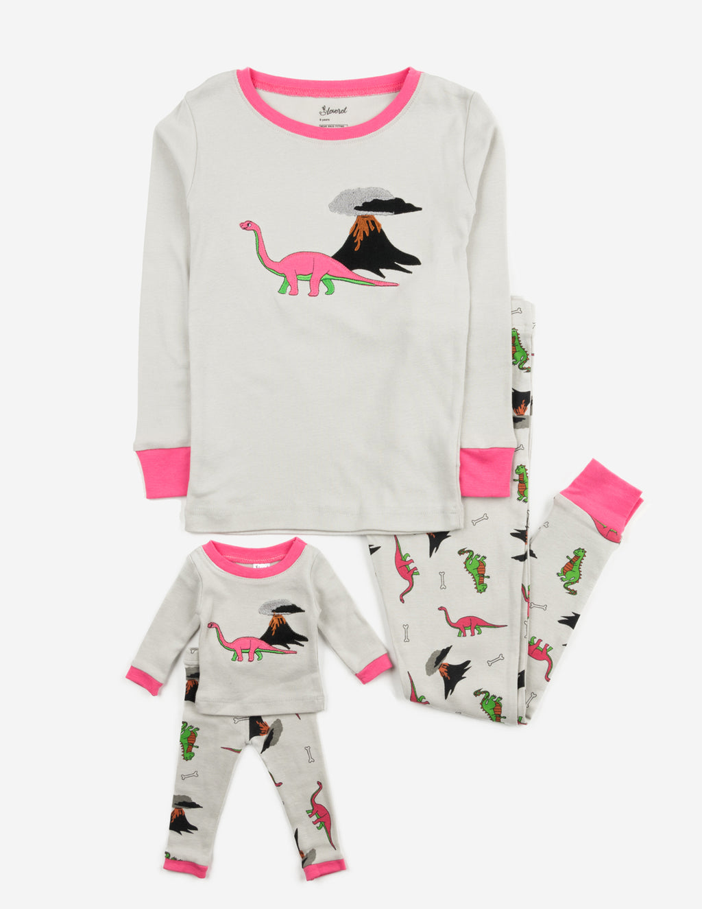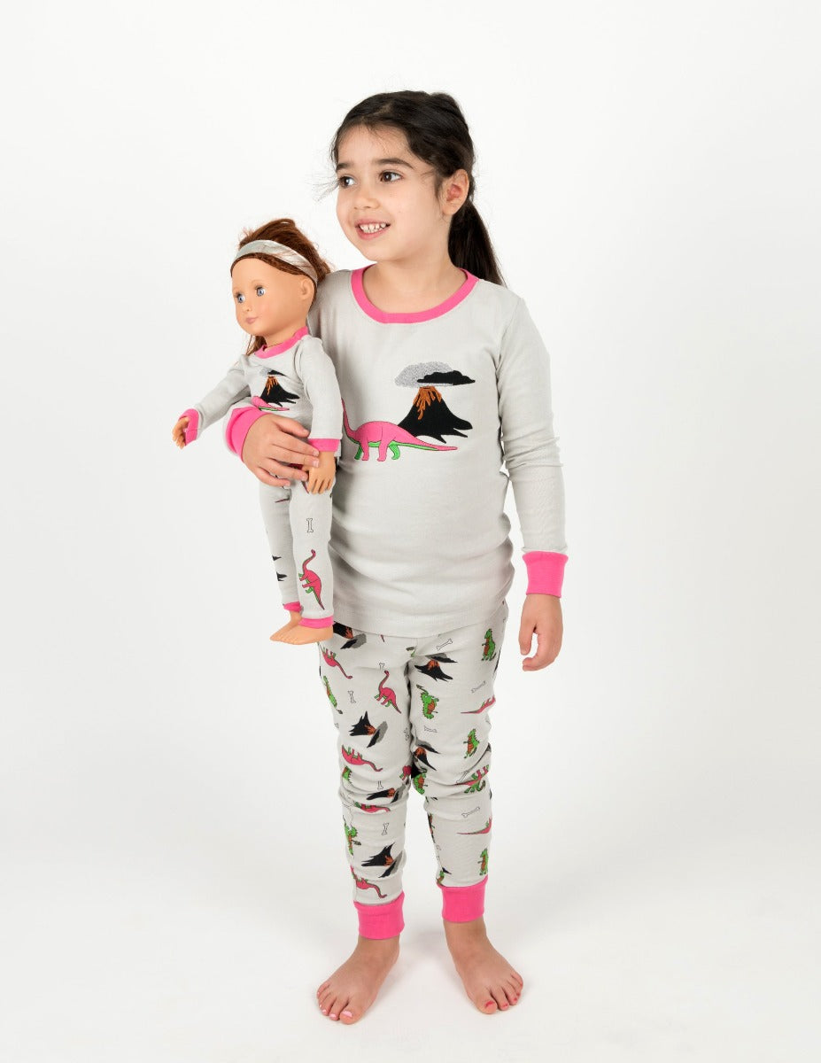 Let your little one stomp into bedtime in style with our Matching Girl & Doll Dinosaur Pajamas! Featuring adorable pink dinos on a soft grey background, this cozy set is perfect for dino lovers and their 18" doll companions.