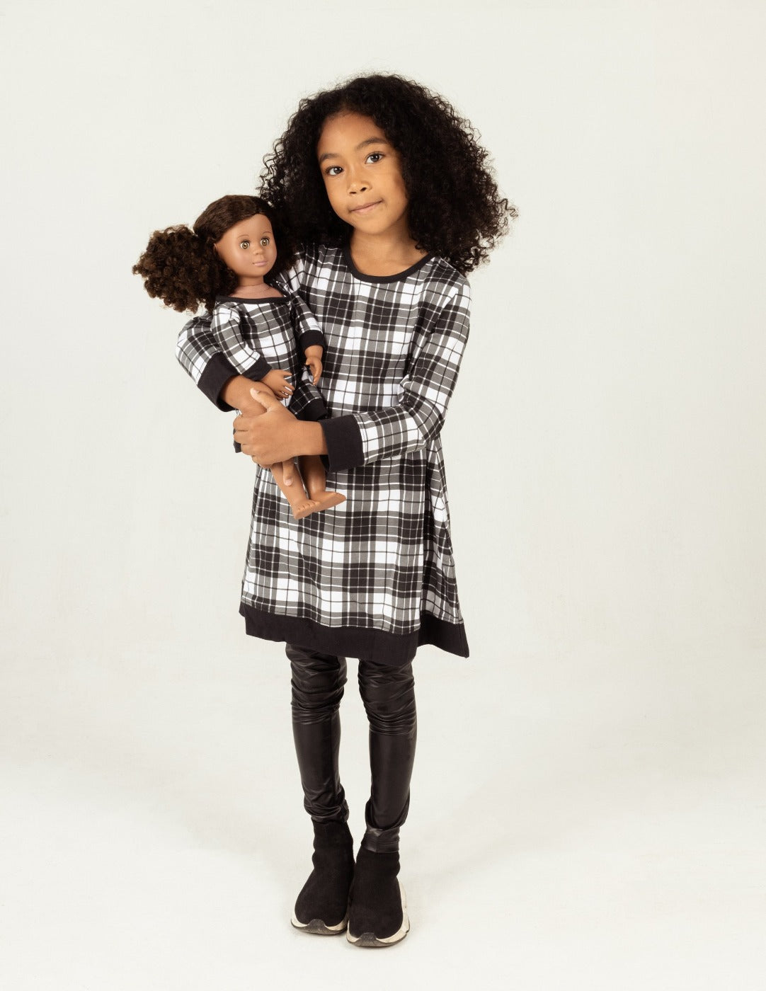 Matching Girl and Doll Cotton Dress Black & White Plaid