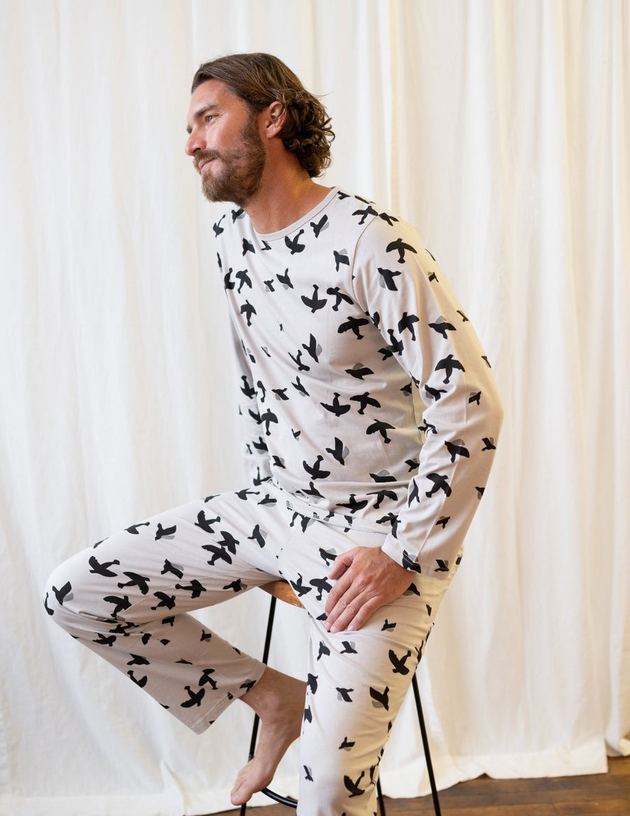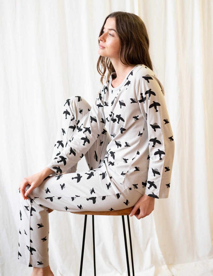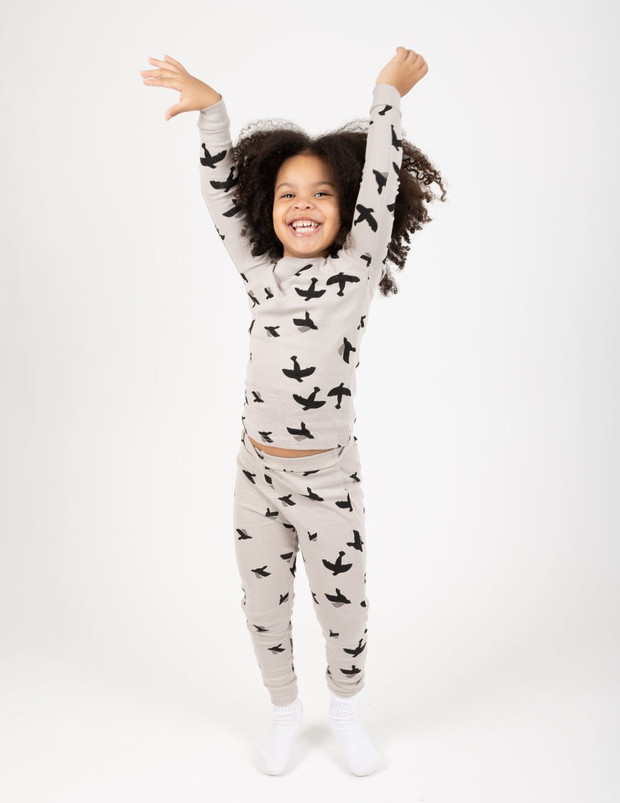 Grey Birds Matching Family Pajama Set