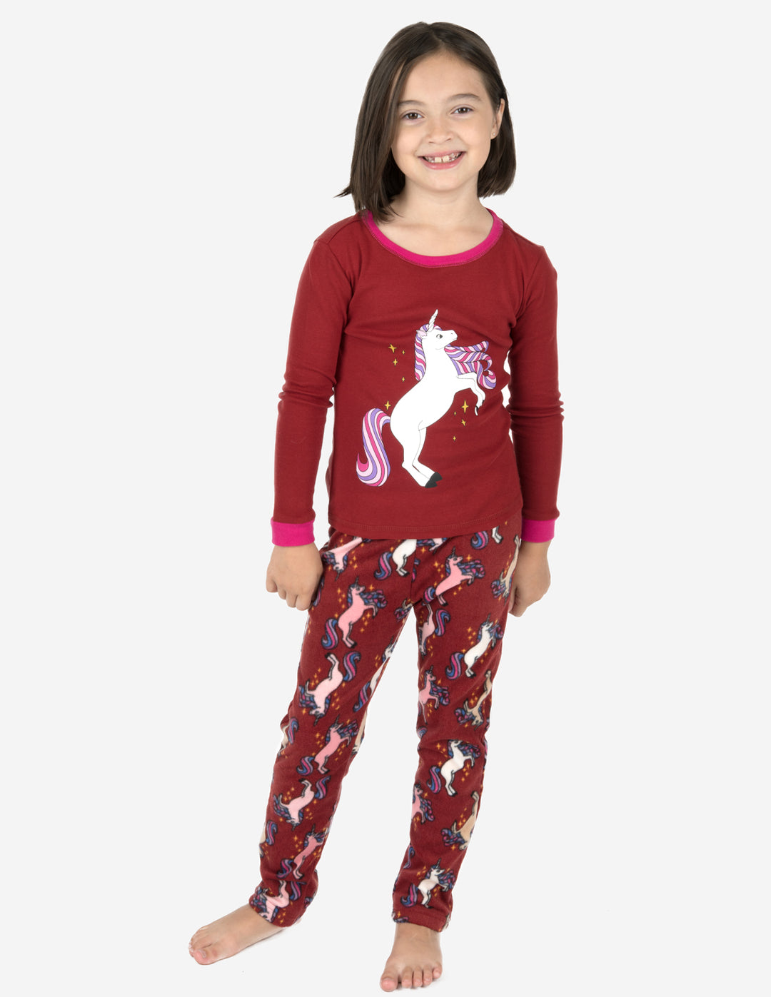 Kids Cotton Top & Fleece Pants Unicorn Pajamas