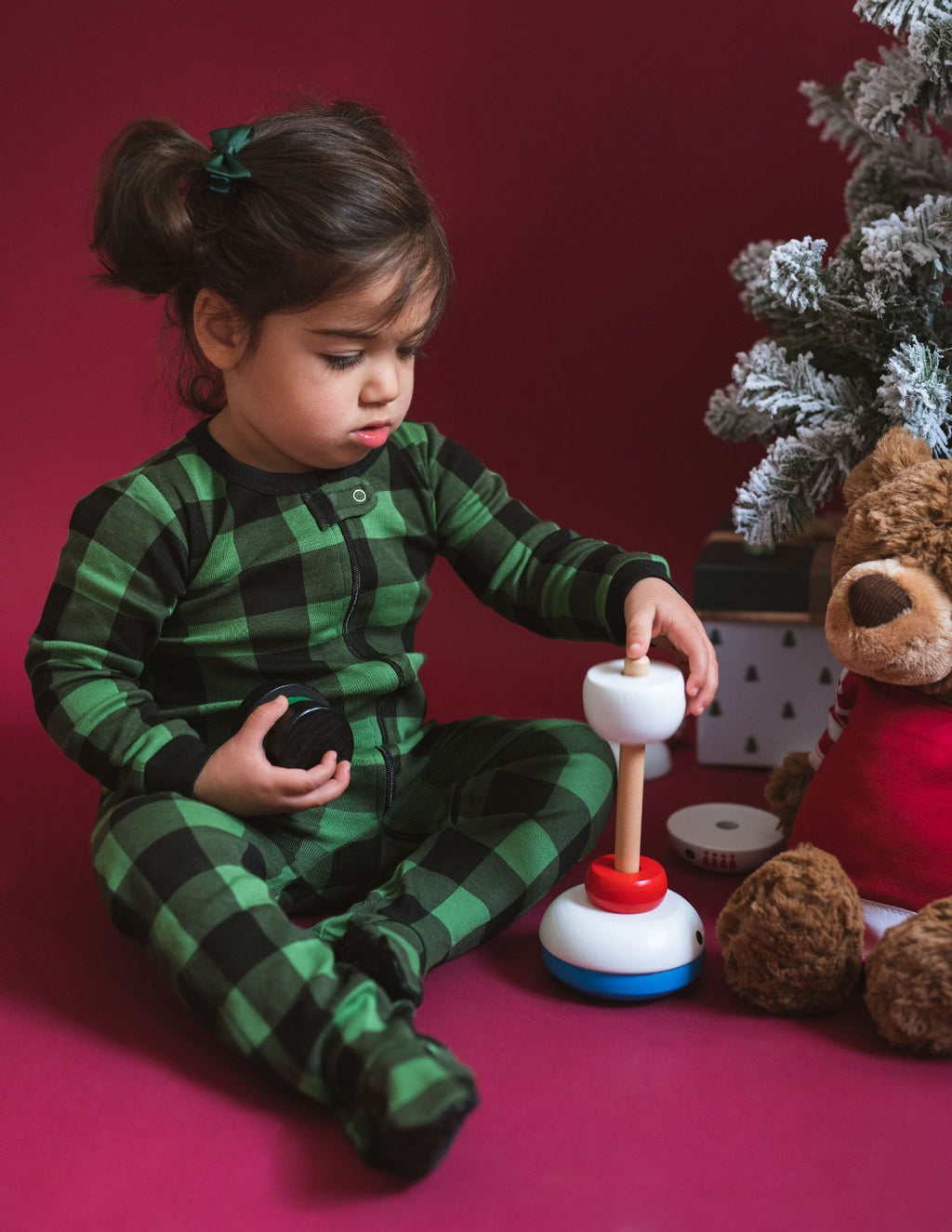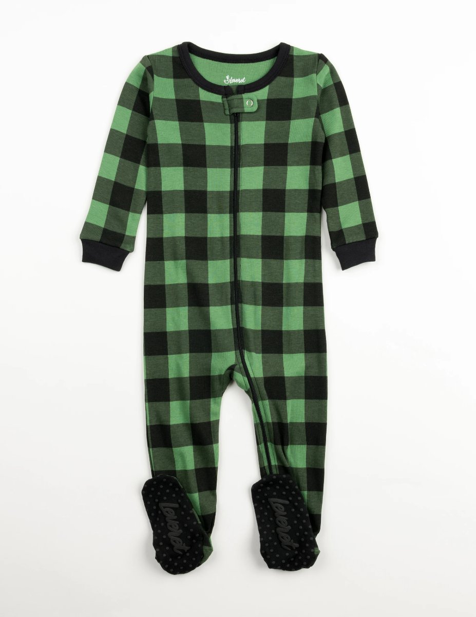 Have your extra little ones match with the rest of the family in style and comfort with the Kid's Footed Black & Green Plaid Pajamas. These unique pajamas are perfect for any beloved holiday and for providing your child with the utmost warmth during the frigid months. Imported products consist of a one-piece zip-up set with unique Leveret footed grips to keep kids secure on all of their adventures around the house. The black and green plaid design will match with other similar family sets, and sizes are offered from 3 months to 5 years of age. With the soft 100% cotton makeup, consider choosing a size larger since outfits will shrink by a few inches. Child pajamas will also fit snugly to protect them from any potential fire dangers. The Kid's Footed Black & Green Plaid Pajamas will go perfectly with any other family style, and holiday photoshoots are sure to be memorable!