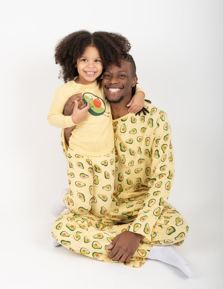 The Kids Avocado Pajamas will be the best sort of pajamas to wear for any special event or festive occasion. Your little one will be sure to appreciate the smiling avocado designs on the yellow long-sleeved shirt and long pants. Both products are imported and are made of 100% soft cotton. The tagless labels complement the already comfortable feel, and pajamas are machine wash cold inside out. To provide the best safety for your child against fire dangers, pajamas are specially designed to be a snug fit. The Kids Avocado Pajamas are offered from 12 months of age to 14 years old, however, sizes will shrink after the first initial washes. If your child desires an even looser fit, please consider choosing a size larger. With more avocado-themed pajamas available in the family sets, your child will match perfectly with everyone else!