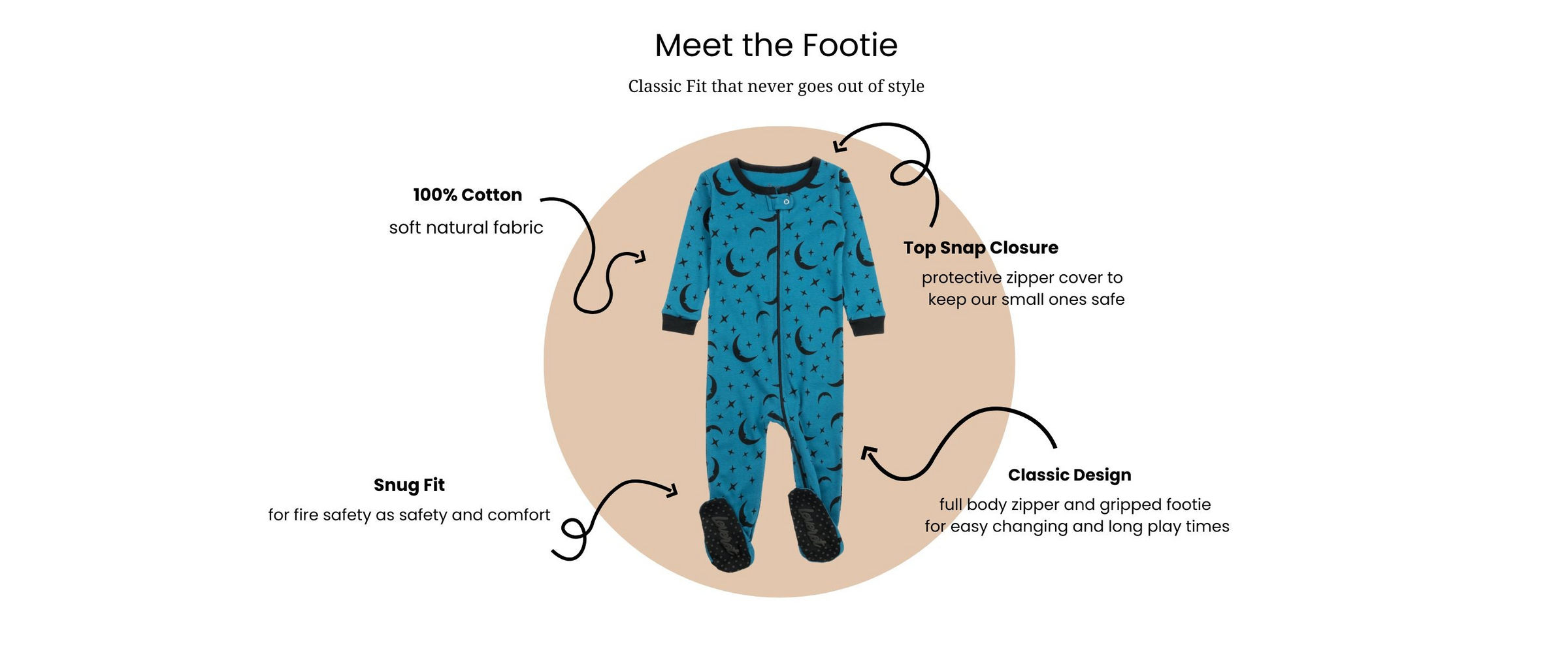 Meet the footie; classic fit that never goes out of style. Teal blue moon print Meet the footie; classic fit that never goes out of style. Teal blue moon print