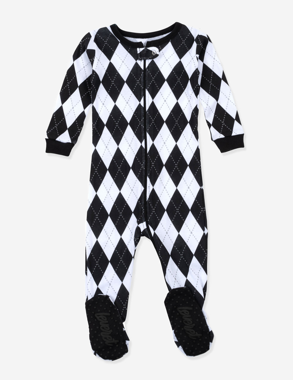The extra little ones will love their own special Kids Footed Black & White Argyle Pajamas, and they will be a superb addition to any matching family. Every pajama comes with an adorable black and white argyle pattern to complement the overall cozy feel. Product is a one-piece zip-up set with unique footed grips to keep your child warm for sleeping or running around the house. Their comfort is guaranteed with the 100% cotton makeup, and sizes are offered from 3 months old to 5 years of age. Tagless labels will prevent any scratches, and pajamas are machine wash cold inside out. To ensure their protection from potential fire hazards, each product is designed to have a snug fit. These holiday seasons are bound to be all the more enjoyable for your little ones, and they will fall in love with the Kids Footed Black & White Argyle Pajamas!