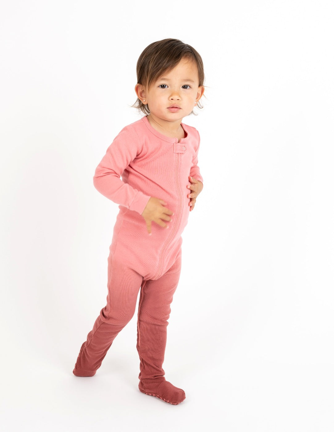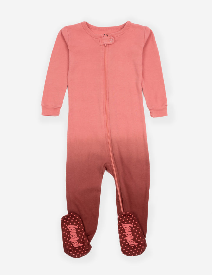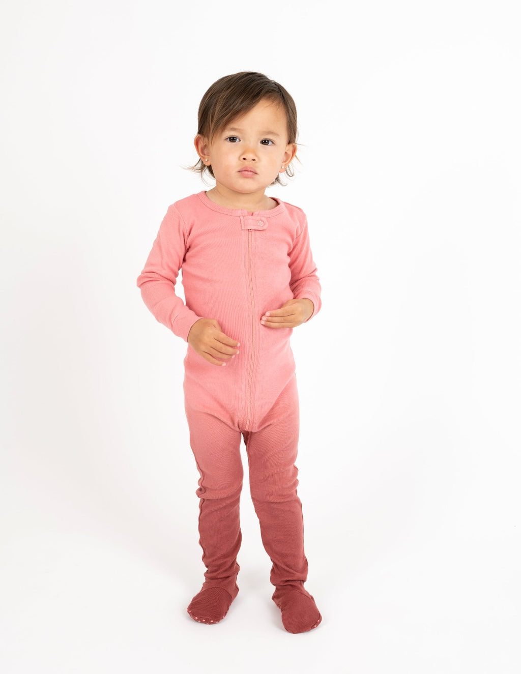 Kids Footed Pink Ombré Tie Dye Cotton Pajamas