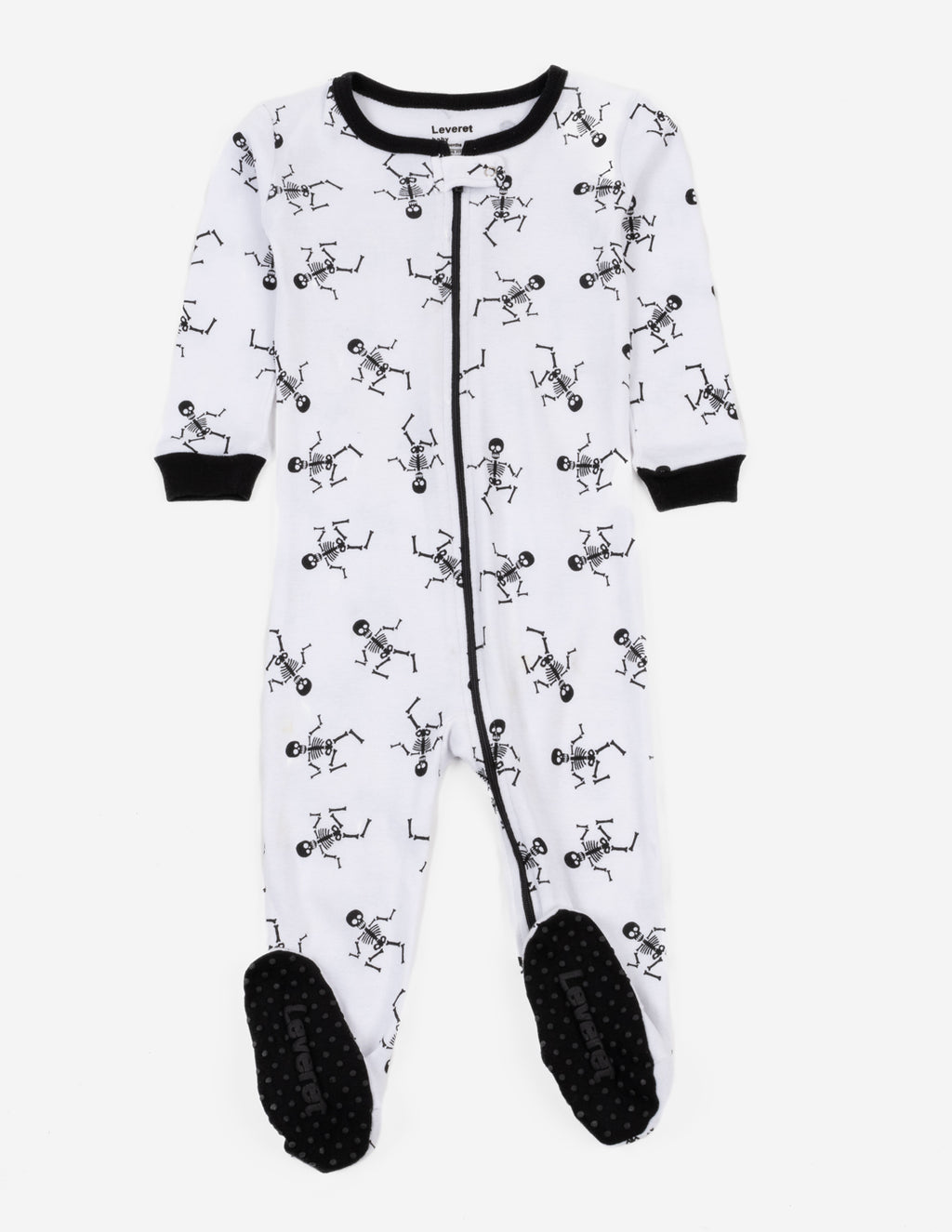 black and white skeleton print baby footed pajamas