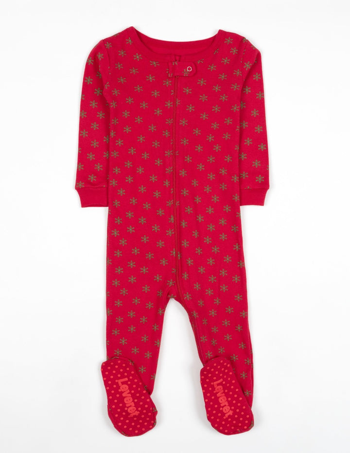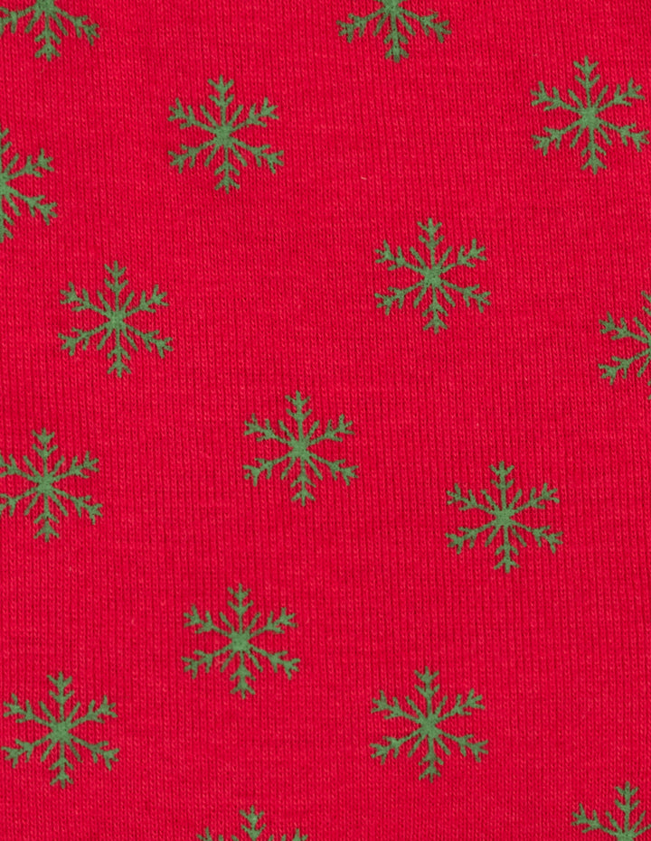 Kids Footed Red & Green Snowflakes Cotton Pajamas