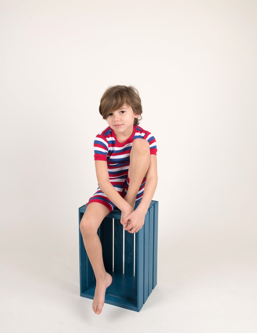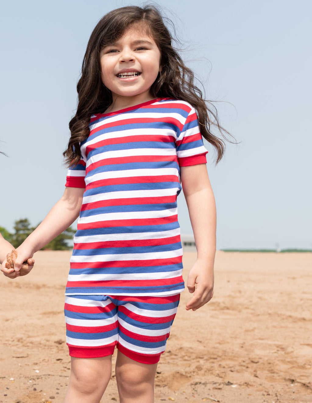 Kids Two Piece Short Cotton Red White & Blue Striped Pajamas