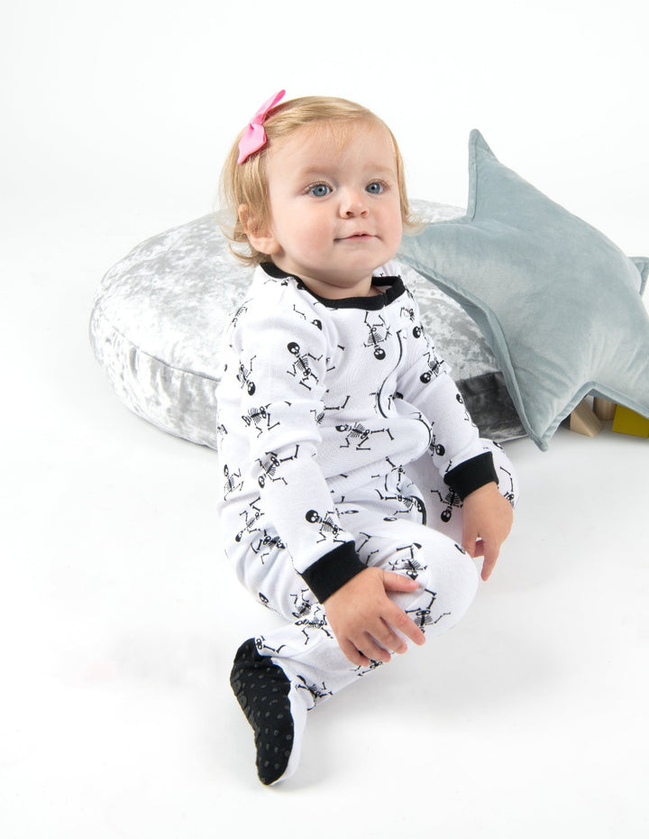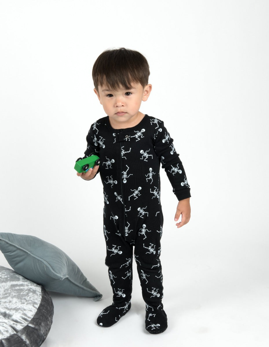 Whether it’s for a Halloween party or a cozy night in, your little one will be ready for spooky fun in our Kids Footed Skeleton Pajamas. Choose from two classic styles: Skeleton Black or Skeleton White—perfect for sleep, play, or trick-or-treating!