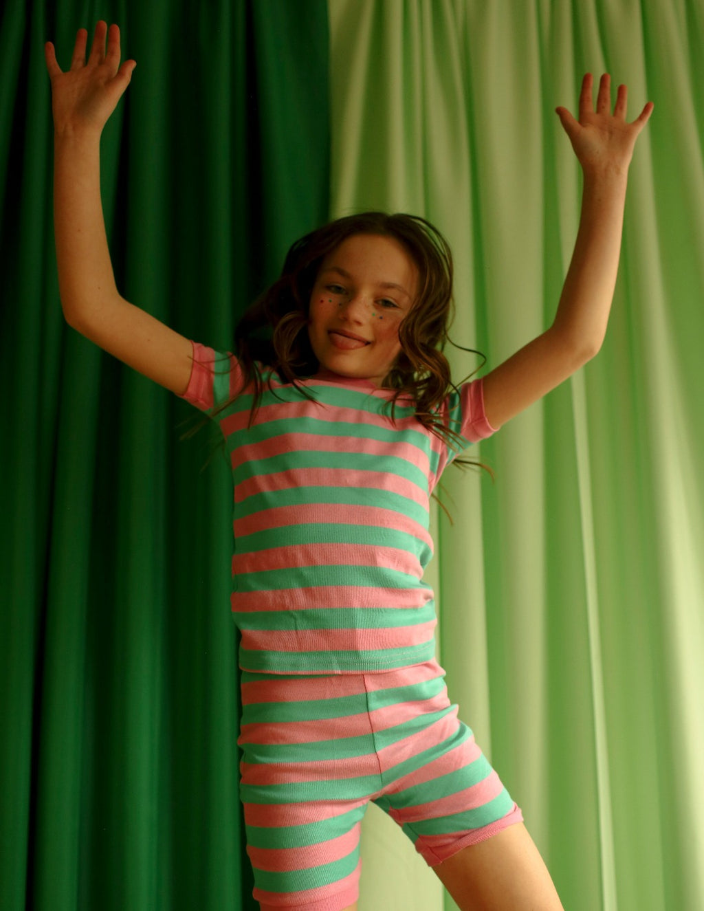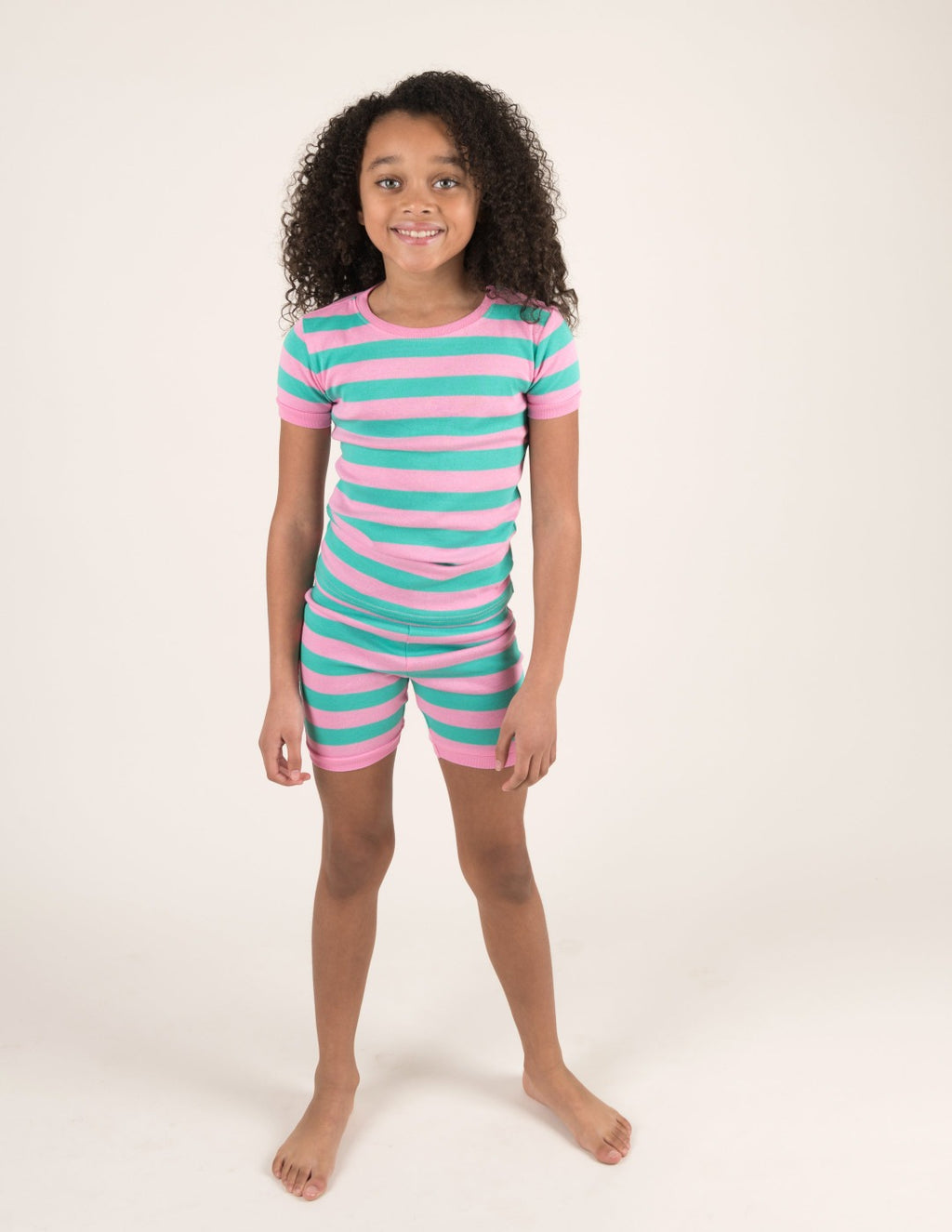 Kids Two Piece Short Aqua & Pink Stripes Pajamas