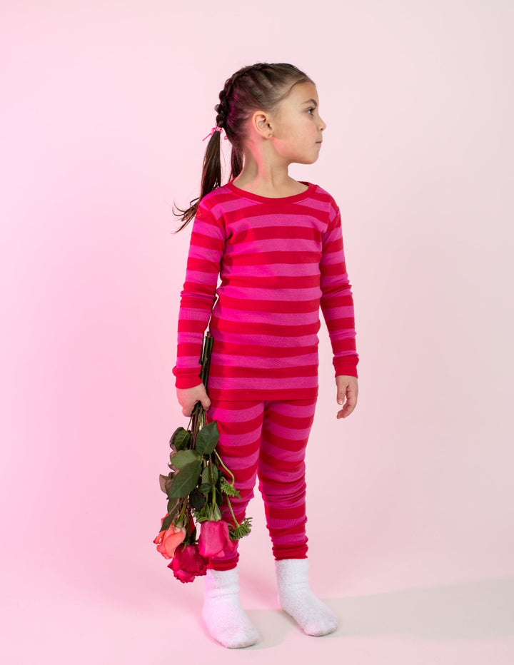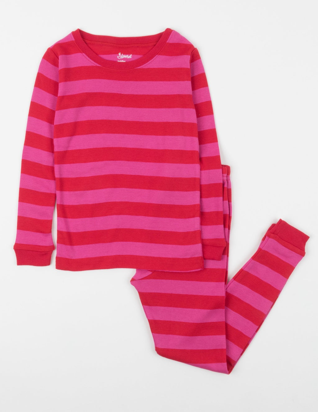 Having your little ones match with the comfy family is effortless with the Kids Two Piece Red & Pink Stripes Pajamas. Every outfit comes with a stylish design of red and pink stripes, easily complementing the overall cozy feel. Pajamas are made from soft cotton, and implement ribbed cuffs at the wrists and ankles. Their warmth is guaranteed in the long sleeved shirt and elastic bottoms, while the tagless labels ensure a scratch free experience. Products are machine wash cold to ensure utmost quality, and sizes are available from ages 12 months to 14 years. These Kids Two Piece Red & Pink Stripes Pajamas will be a fun addition to your child’s wardrobe!
