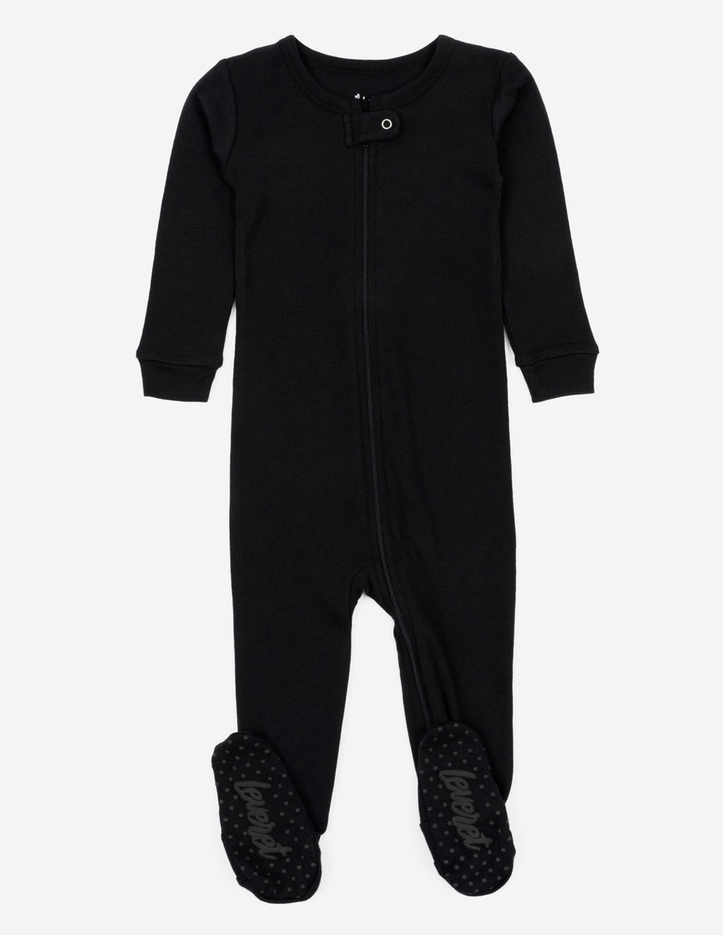 With the Solid Color Black Footed Pajamas, any child will sleep soundly while having a stylish look that matches with the family. These imported products feature special footed grips to keep wearers warm during those frigid months, and are made from 100% soft cotton. Each outfit is a one-piece zip-up set to provide an extra secure feeling, while our sizes are offered from 3 months to 5 years old. The tagless labels ensure a scratch-free experience, and all products are snug fitting to protect wearers from possible fire dangers. Be on the lookout for other similar products to match with the Solid Color Black Footed Pajamas!