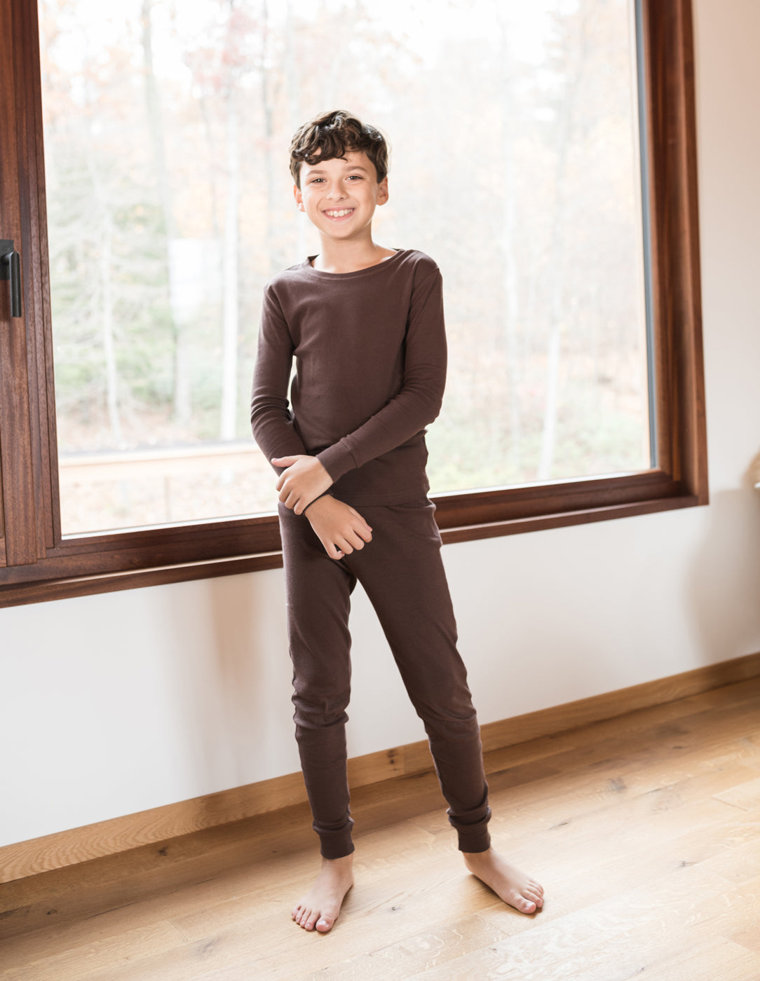 These Kids Two Piece Solid Brown Pajamas are bound to give your child the best night of stylish rest. Every product is made with a 100% cotton material and includes tagless labels to prevent annoying tag scratches on exposed skin. The brown design matches easily with our other family outfits, so the entire family can look cozy for any memorable event. Pajamas consist of a two-piece set featuring breathable bottoms and a long-sleeved shirt, both with ribbed cuffs at the ankles and wrists for extra comfort. We offer sizes ranging from the ages of 2 to 14 years, but outfits will shrink after washing due to the cotton material. Every special holiday or family occasion is sure to be even more beloved with the Kids Two Piece Solid Brown Pajamas!