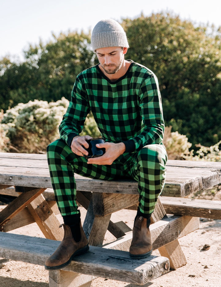 mens green black plaid pajamas