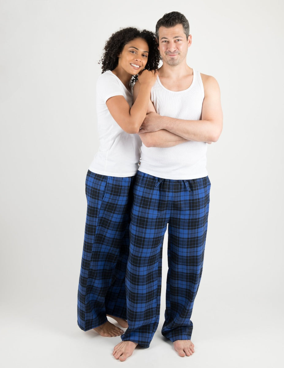 The Men’s Black & Navy Plaid Flannel Pants are the best bottoms to wear for the chilly weather and shall easily match with the rest of the family. These imported pajamas consist of a black and navy-colored plaid design to complement its overall loose fit. Every pair of pants are made from 100% cotton, which will be perfect for sleeping or lounging around the house. Available in sizes Small to XXX-Large, however, sizes will shrink after the first washes due to the cotton material. Pants are machine wash cold inside out and have tagless labels that prevent scratches on exposed skin. Any matching event will be all the more memorable with the Men’s Black & Navy Plaid Flannel Pants, and every man’s comfort is guaranteed!