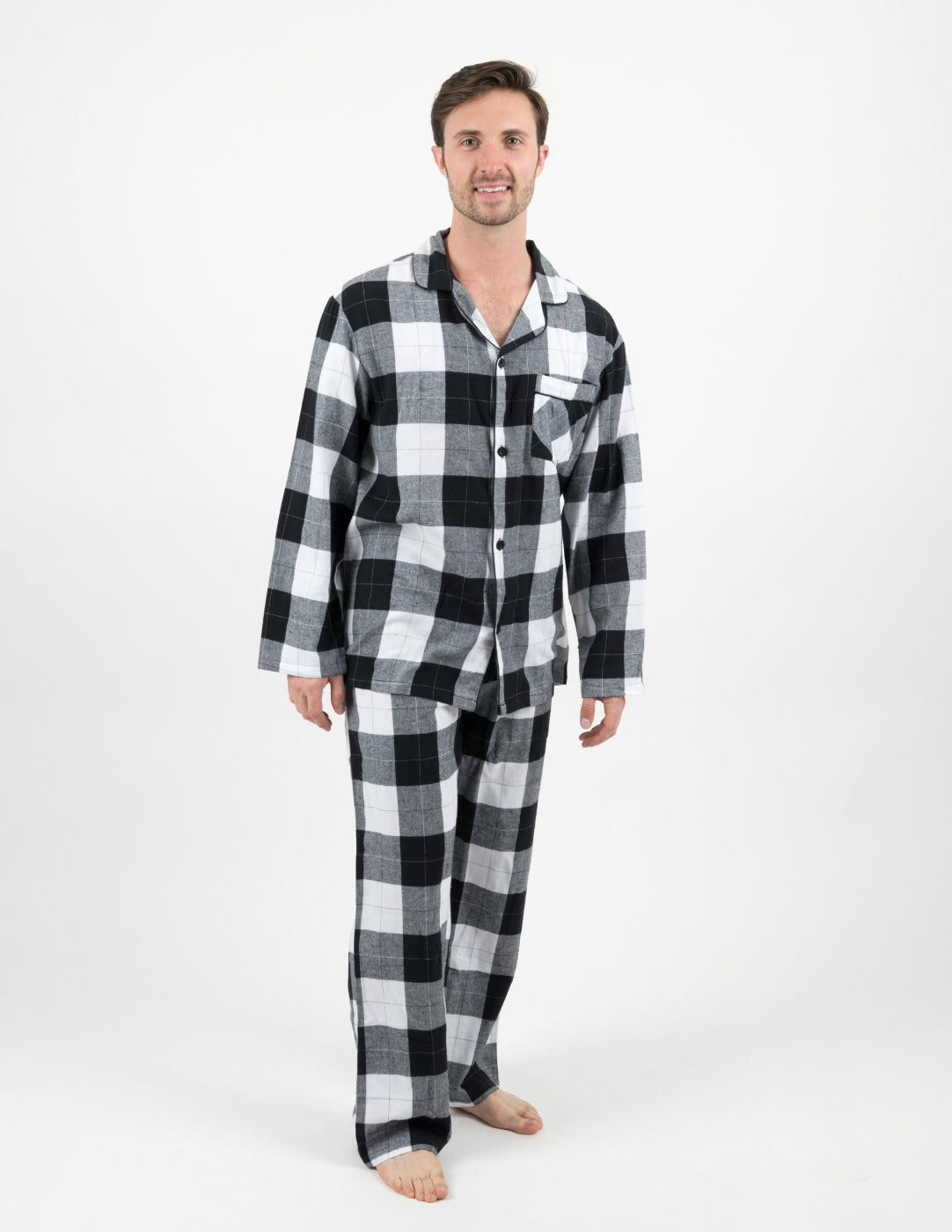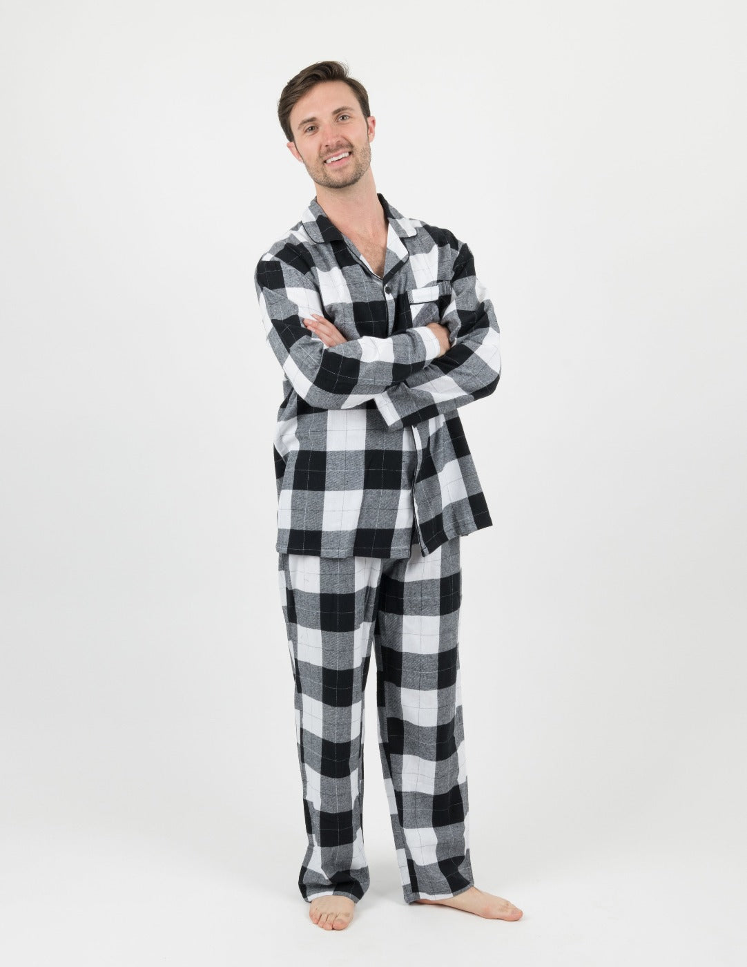 The Men’s Black & White Plaid Flannel Pajamas will be the ideal outfit for sleeping or lounging around the house during the frigid winter months. With a buttoned-down top and long pants both made of 100% cotton, every man is sure to have a comfortable experience. These imported pajamas have an appealing black and white plaid design that easily matches with other family products. Tagless labels will also ensure a scratch-free experience, and the overall loose fit is sure to bolster the breathability of the pajamas. Sizes are from Small to XXX-Large, but consider choosing a size larger since the cotton material will shrink after washing. Matching for holiday photos will be memorable with the Men’s Black & White Plaid Flannel Pajamas, and men are sure to love every cozy moment!