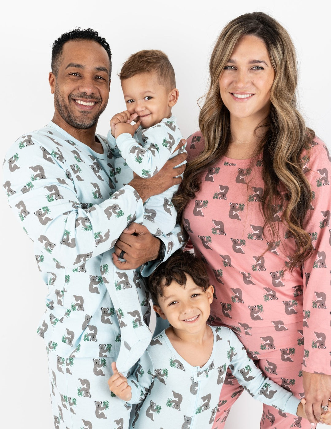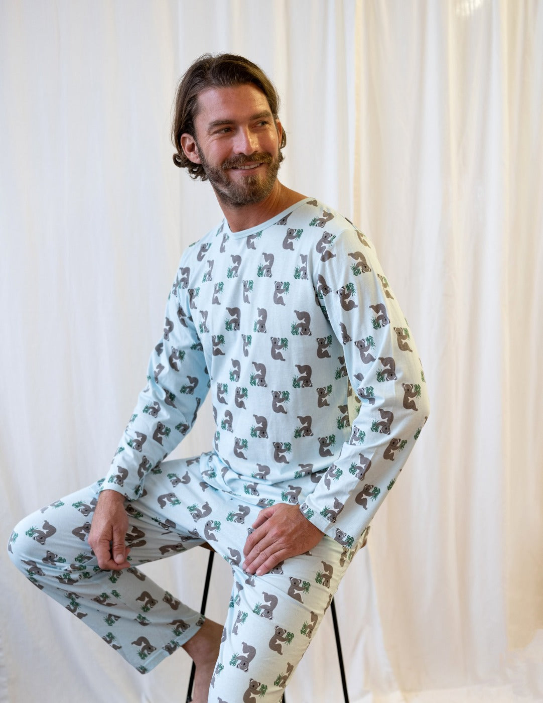 With our Men’s Loose Fit Blue Koala Pajamas, any father can look to get in on the animal-themed fun with the rest of their family! This uniquely imported sleepwear is made of 100% soft cotton along with an elastic waistband to provide the utmost comfort. Its design features a long pattern of koalas with leaves across the entire two-piece set, perfectly complementing the sky-blue-colored design on the background. The sleeves and pants are a loose fit that provides extra maneuverability, and tagless labels to protect any exposed skin from scratches. Sizes are offered from Small to XX-Large. Keep in mind that cotton products will shrink by a few inches after the first initial washes, consider sizing up if you crave a looser feel. The whole family can be matched with other koala pajamas, and the Men’s Loose Fit Blue Koala Pajamas will be the perfect addition to any photoshoot or special celebration!