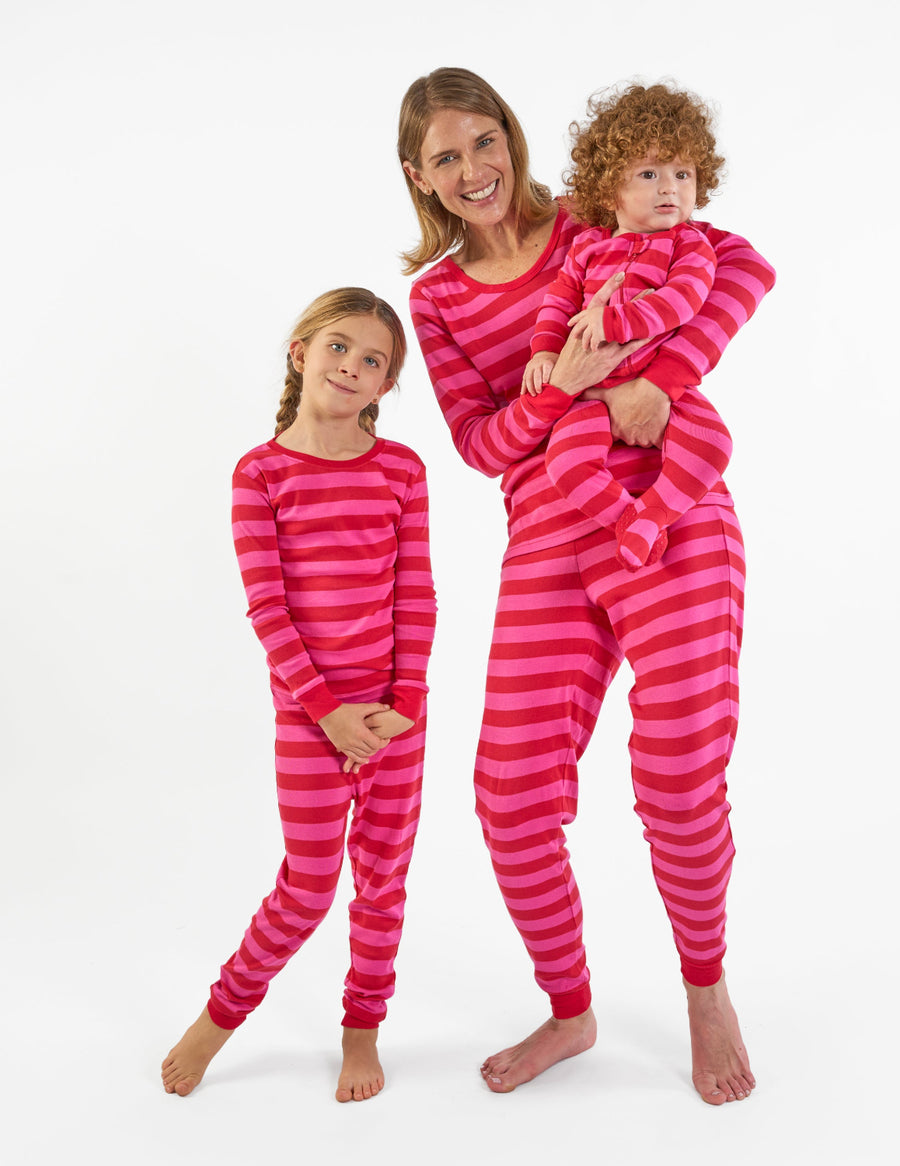 Red & Pink Stripes Matching Family Pajama Set