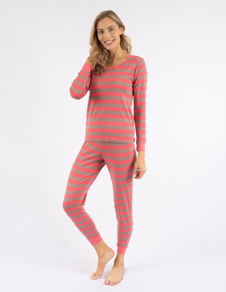 Women’s Pajamas: Slim-fit two-piece sets with long sleeves, ribbed cuffs, and an elastic waistband for a snug yet cozy fit