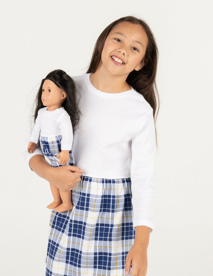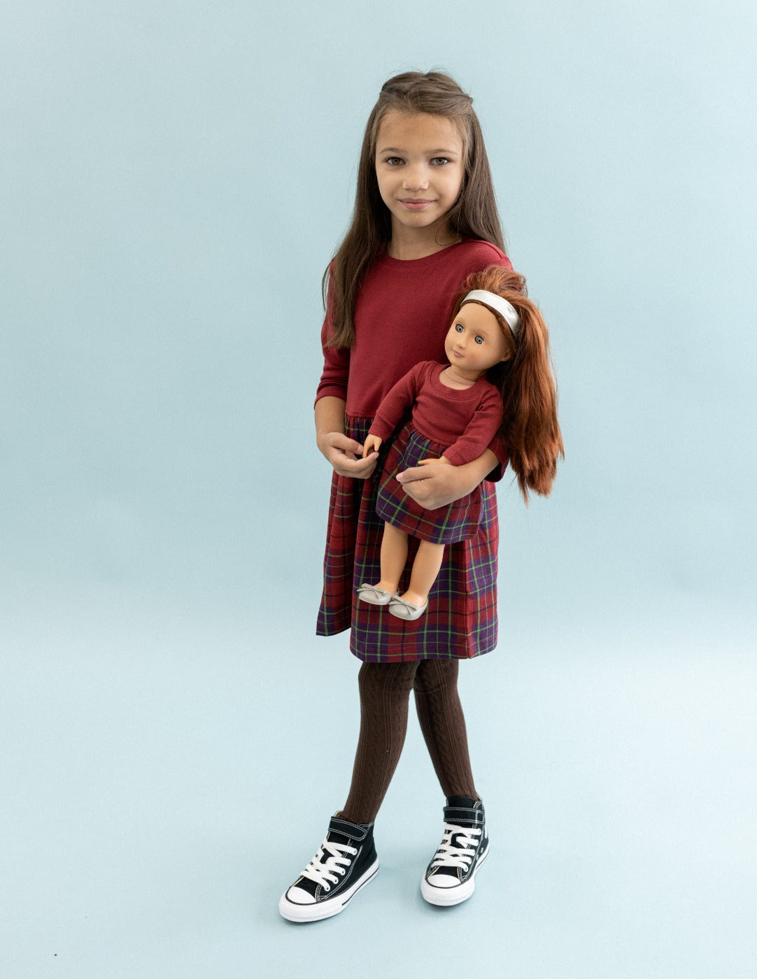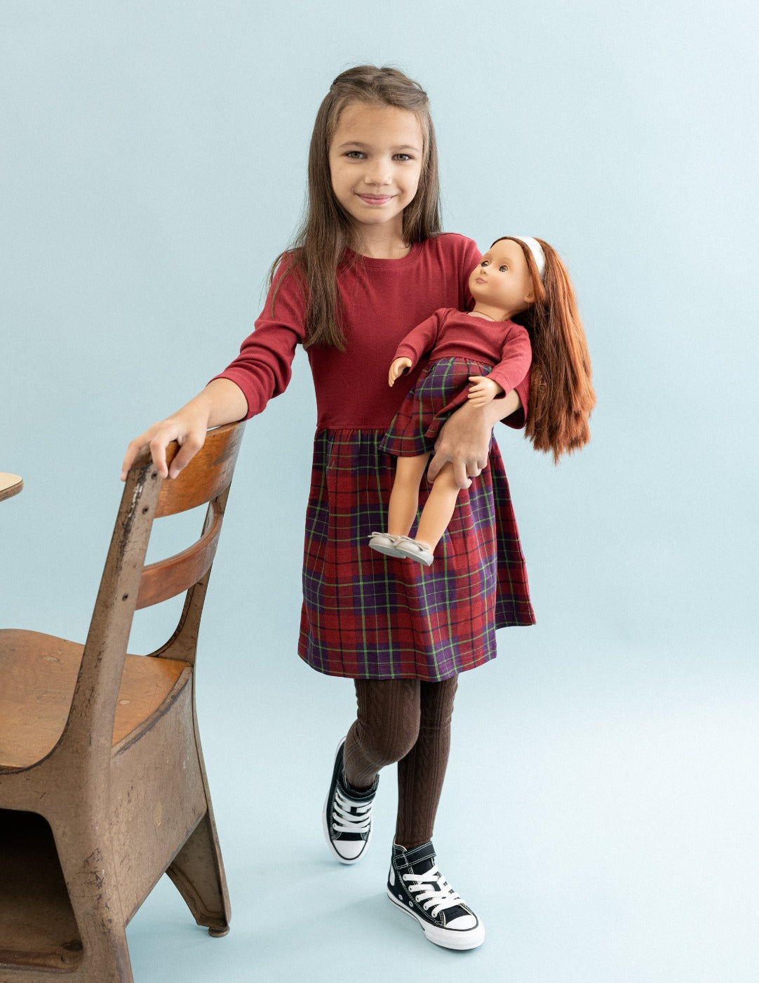Dress your child and their favorite doll in timeless style with our Matching Girl & Doll Plaid Cotton Skirt Dress. Featuring a cozy cotton build and an elegant design, this set is perfect for year-round occasions.