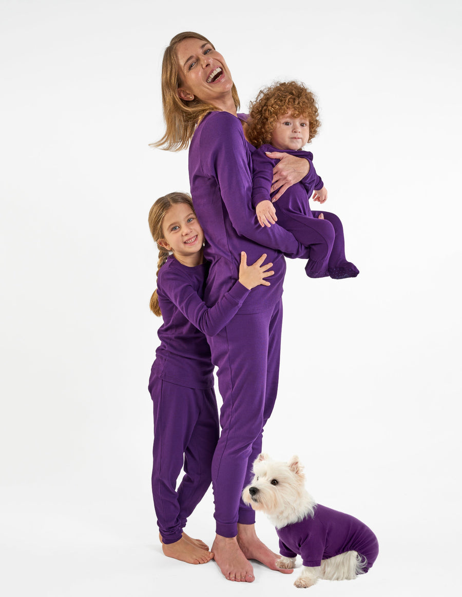 The family can surely enjoy the snazzy Matching Family Solid Dark Purple set of pajamas. Everyone will stay comfortable in the 100% soft cotton material, and the tagless labels shall protect any exposed skin from being scratched. The women’s option features a two-piece slim fit set with an elastic waistband. Ribbed cuffs at the ankles and wrists are also included for even more coziness while lounging around the house or resting. Our children’s pajamas also have a two-piece set, or a zip-up set with unique footed grips to keep kids warm and secure. Its snug fit also makes sure that they are protected from any potential fire hazards. Pets will also be stylish with our dog pajamas, and they will offer your special one the best night of rest and warmth for the colder months. Everyone will have the chance to be festive with the Matching Family Solid Dark Purple pajamas, and shall match year-round!