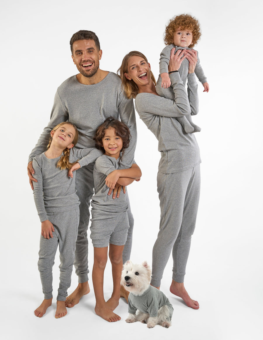 These Matching Family Solid Light Grey pajamas are amazing for any house looking for a cozy set of clothes for lounging or sleeping. Every imported product comes with a 100% cotton makeup, and tagless labels to protect any exposed skin from tag irritations. Men’s and women’s pajamas are a two-piece set, consisting of a long-sleeved shirt with long pants. Its elastic waistband will improve comfortability, and the ribbed cuffs will be sure to provide an extra slim fit. The kid’s products have a zip-up footed option or a cozy two-piece set that is bound to keep any little one warm. Every child pajama is also specially designed to be a snug fit in order to keep them protected from any potential fire dangers. Our cute dog pajamas will also match perfectly with the rest of the family set, and will provide your pup with the best warmth during those frigid months. Any photoshoot or festive holiday will be made even more memorable with the Matching Family Solid Light Grey pajama set!