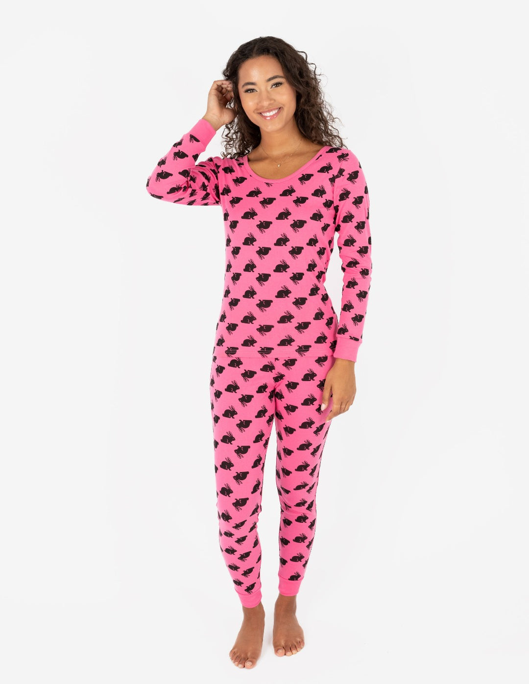 The Women’s Cotton Bunny Pajamas are perfect for matching up with any other Spring and Easter themed pajamas. Moms can look festive with their family, and everyone wearing these clothes will be satisfied with our 100% 190 GSM Cotton. Enjoy the dark green color with bunny design, which is certainly not only intended for children to wear! This two piece, slim fit set even allows for an amazing night of sleep, with ribbed ankle and wrist cuffs for comfortable strolling. Tagless labels and the elastic waistband are sure to provide extra luxury for any woman. Other children and men products match exactly with the Women’s Cotton Bunny Pajamas, which will create a memorable Easter season or family photoshoot! All pajamas are imported, in order to provide wearers with the best sleeping and wearing experience. As with most GSM Cotton products, they are known to shrink after it’s first washings. Consider choosing a size larger if you crave a looser fit, as sizes are offered from X-Small to X-Large.