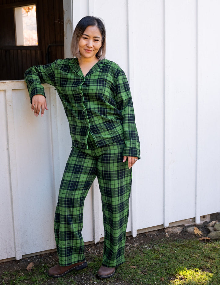 Every woman will adore a pair of pajamas that’s both fashionable and comfy, and the Women’s Green & Black Plaid Flannel Pajamas are perfect for the festive time of the year. These imported products consist of a long-sleeved buttoned-down top with loose-fitting bottoms. Its design is perfect for the holiday season, and the green and black plaid pattern is sure to appeal to any wearer. Pajamas are 100% cotton and will shrink by a few inches after washing. Available in sizes X-Small to XX-Large, keep in mind to choose a size larger if you crave an even looser feel. Matching with the rest of the family is sure to be successful this holiday season, and wearers are sure to love the Women’s Green & Black Plaid Flannel Pajamas!