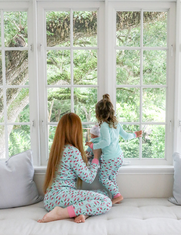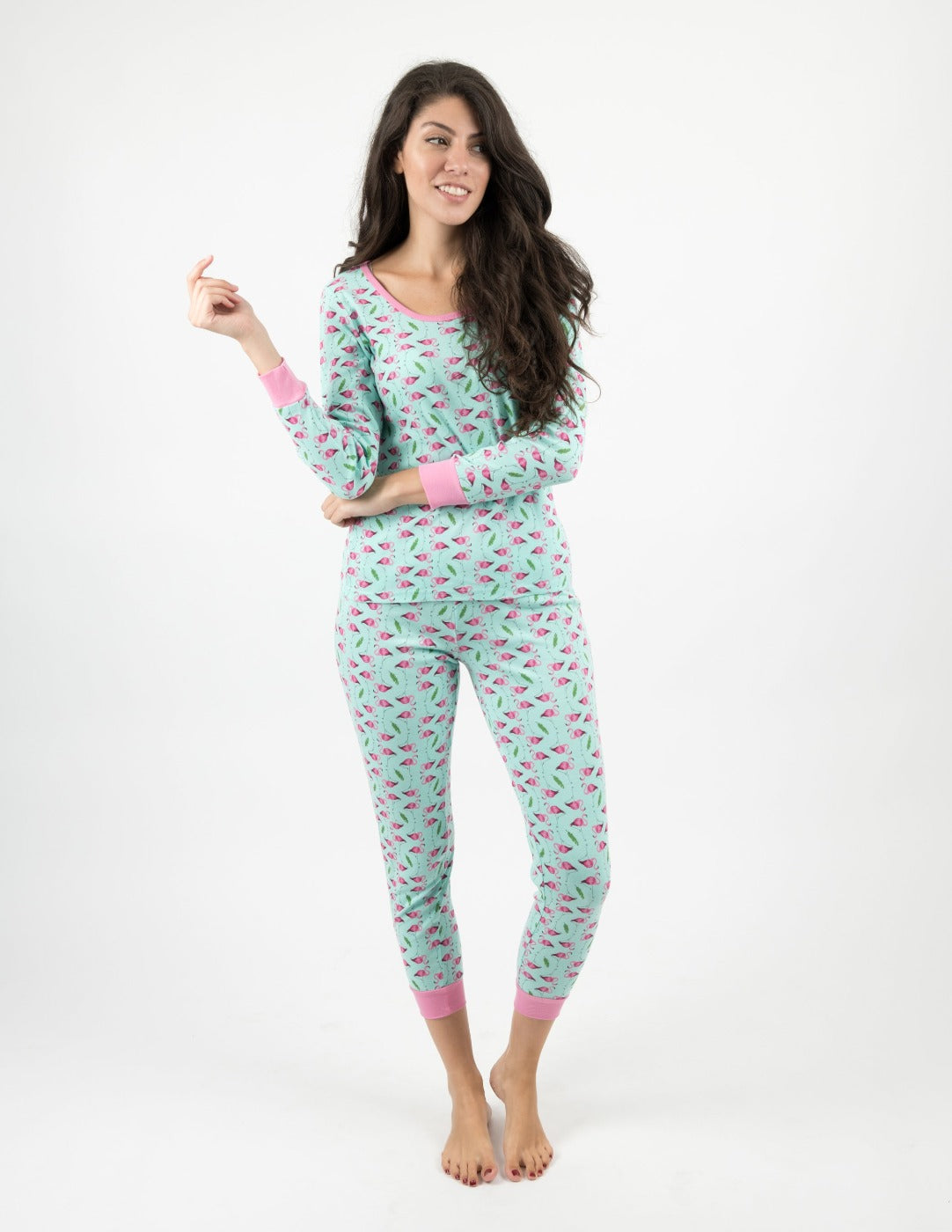 The Women’s Cotton Flamingo Pajamas are perfect for not only matching with other family members but for staying comfy during those colder months. This two-piece set consists of breathable pants and a long-sleeved shirt, both with ribbed cuffs to provide a secure feeling for the wearer. Pajamas are made from 100% soft cotton and implement tagless labels to keep exposed skin free from scratches. Each product is designed with a fun pattern of adorable flamingos on an aqua background, easily styling with other products for matching occasions. Those chilly nights will be extra warm for wearers with our Women’s Cotton Flamingo Pajamas!