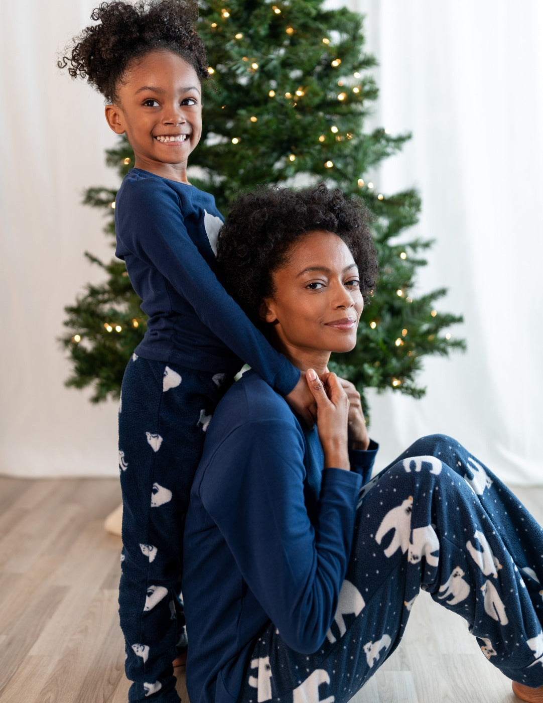 The Women’s Fleece Polar Bear Set shall become a favorite for wearers while they receive the most stylish comfort. Every outfit consists of a two-piece set of breathable bottoms with a long-sleeved shirt, both made of polyester. Wearers will love the solid navy shirt and pattern of polar bears to truly bring out those festive feelings. Products are offered in sizes X-Small to X-Large, be sure to size up if you crave an even looser fit. The set is also machine wash cold inside out to preserve the utmost quality. Those festive events and special holidays will be the perfect time to match in the Women’s Fleece Polar Bear Set!