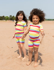 Meet our Classic fit pajamas, woman and man wearing rainbow striped pajamas Meet our Classic fit pajamas, woman and man wearing rainbow striped pajamas